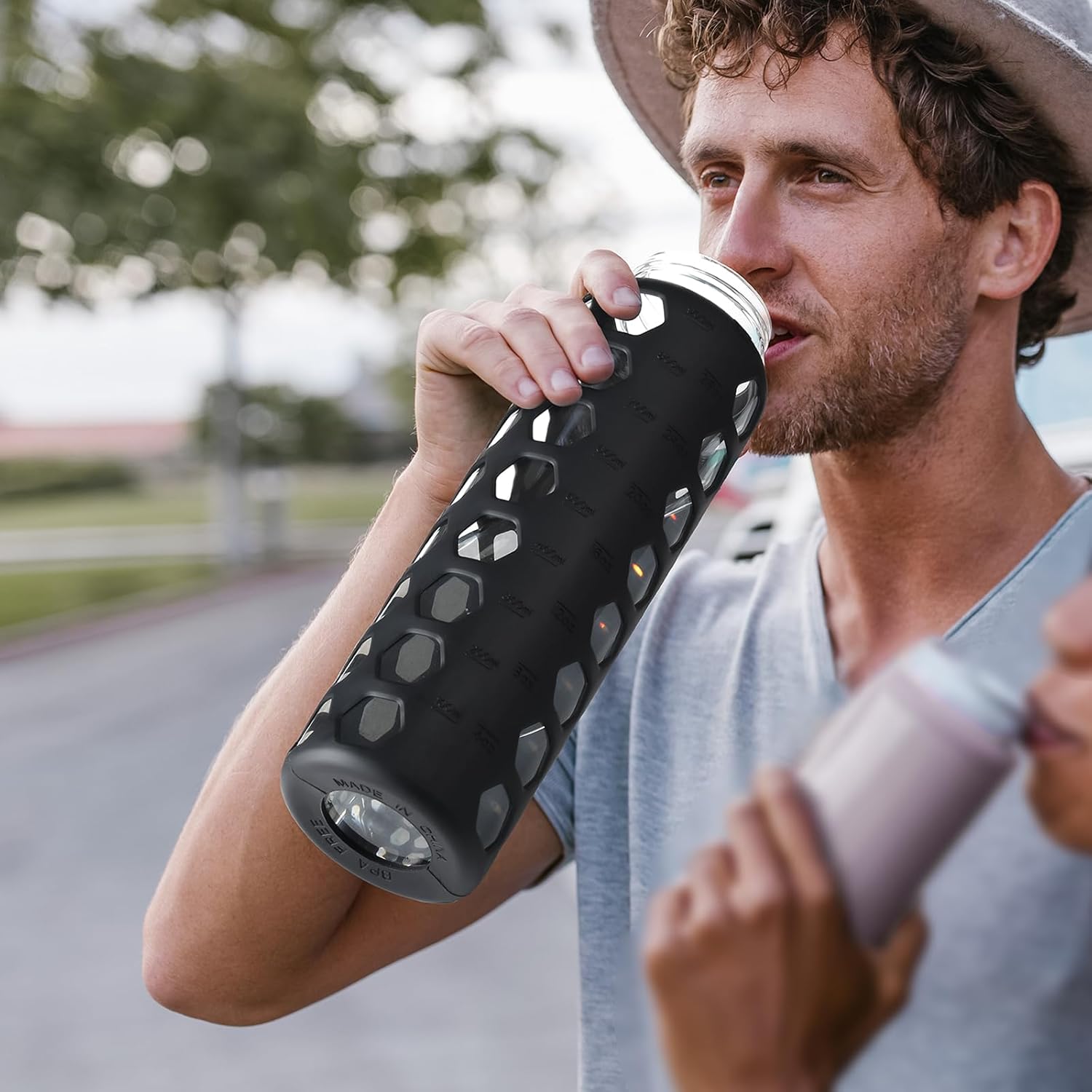 - COLD DRINK:1 liter waterbottle made of premuim borosilicate glass which is sturdy and thermal resistance. It can withstand high and low temperatures without shattering or cracking, which makes the glass waterbottle suitable for both hot and cold drinks.