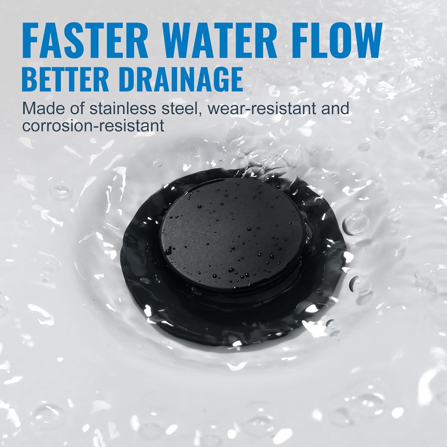 - 【Premium Pop Up Drain】- The Bathroom Sink Drain is made of premium ABS material with flexible silicone gaskets, the exquisite matte black finish can resist daily scratches, corrosion and discoloration.