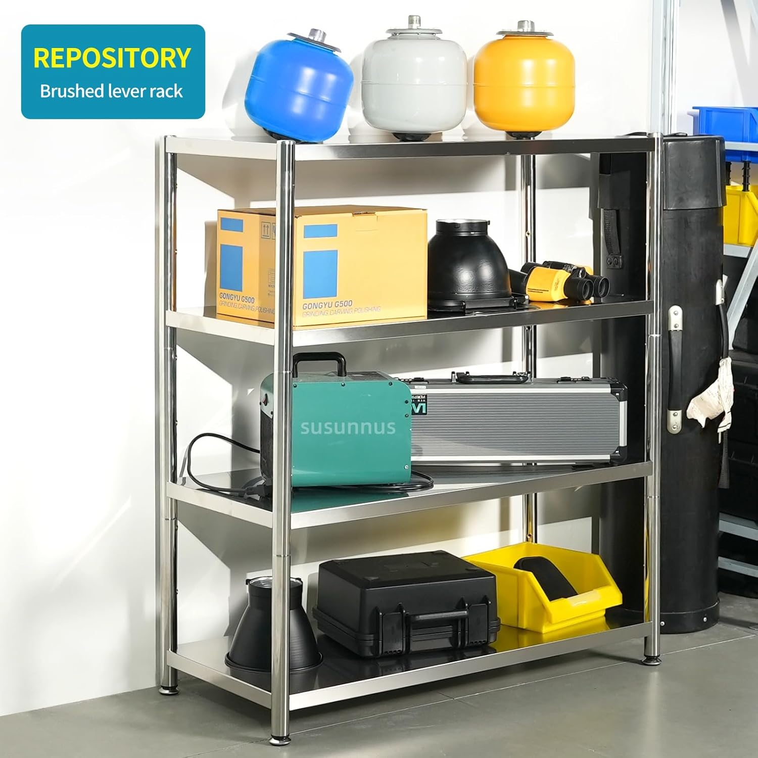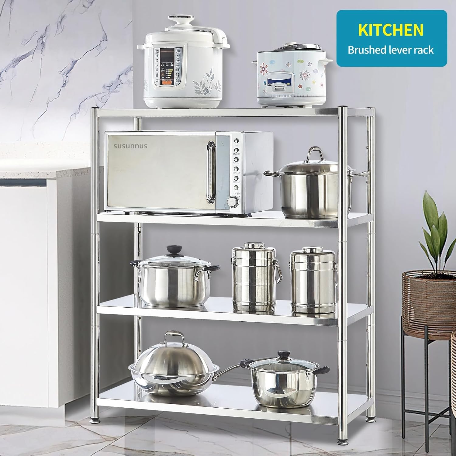 - Heavy Duty Shelving:Open large stainless steel shelving, multi-layer storage space. Kitchen use scene, place a variety of household appliances, tableware; warehouse use scene, place a variety of large industrial supplies