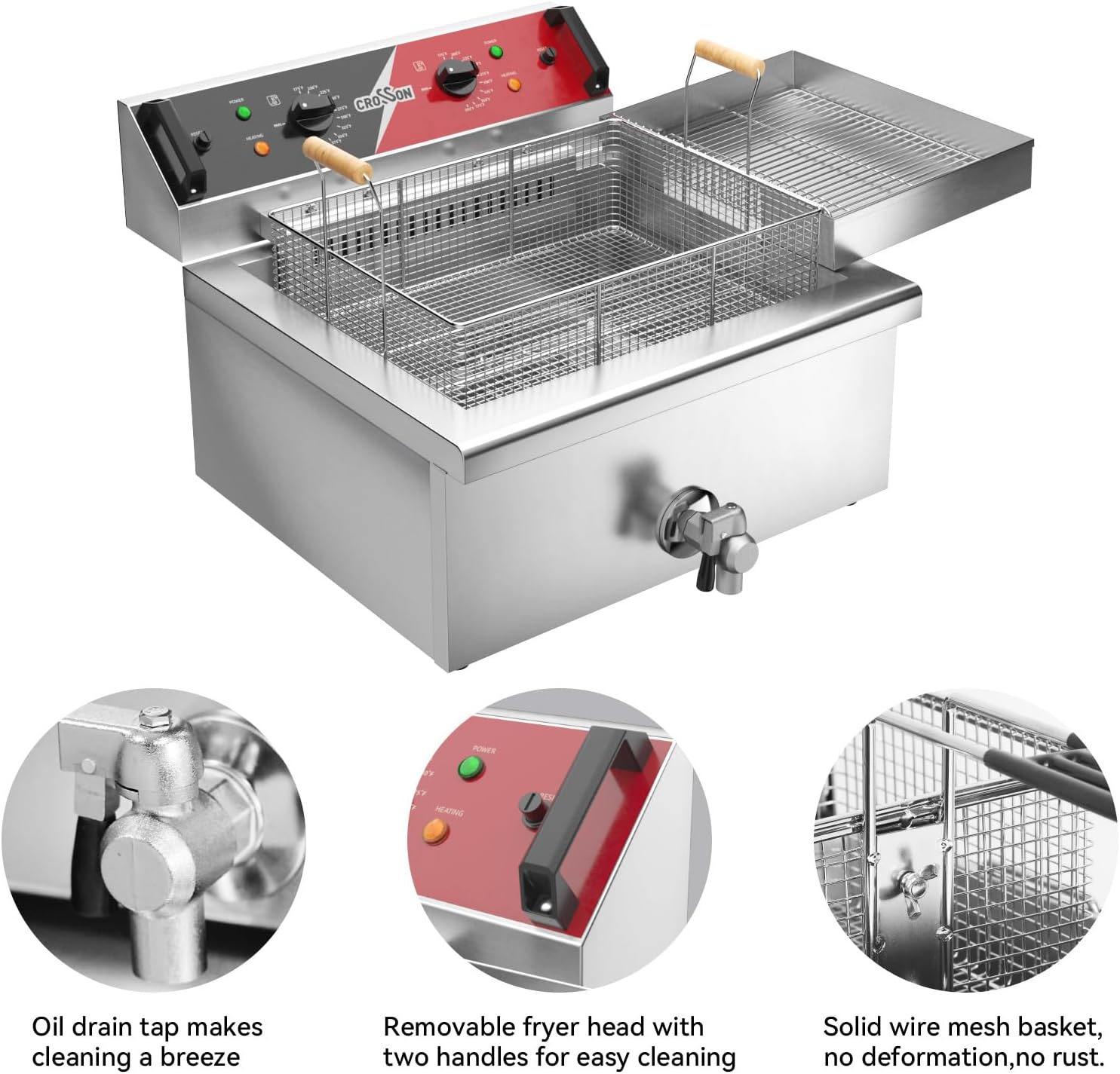 - Easy Clean:Thanks to Quality Copper draining valve,cleaning or changing oil will no longer be a Donkey Work.Take the Handle on Detachable fryer head and remove it for cleaning,cleaning can't be more convenient.