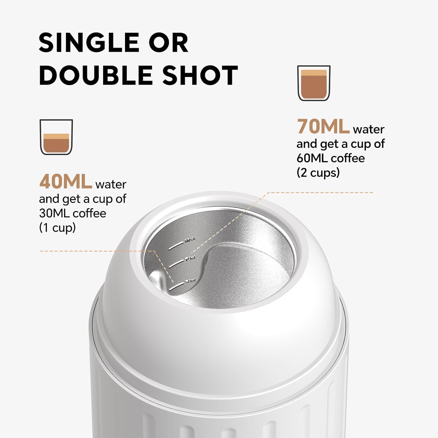 - Charging and Heating: The coffee maker comes with a charger (5V 7A) and a rechargeable battery with a capacity of 7500mAh. It takes approximately 180 minutes to fully charge the battery, which allows for up to 4 times usages of the machine (standard steady heating )(2 minutes per brewing session).