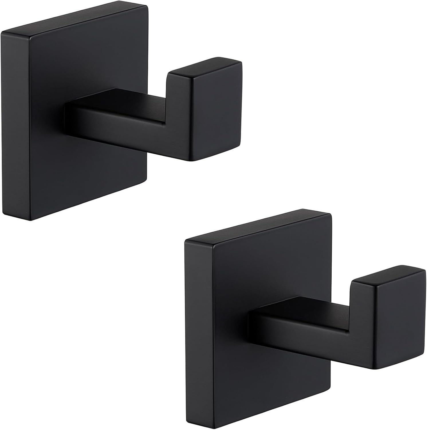 Angle Simple Matte Black Towel Hooks for Bathroom, SUS 304 Stainless Steel Square Wall Coat Hooks, 2 Pack