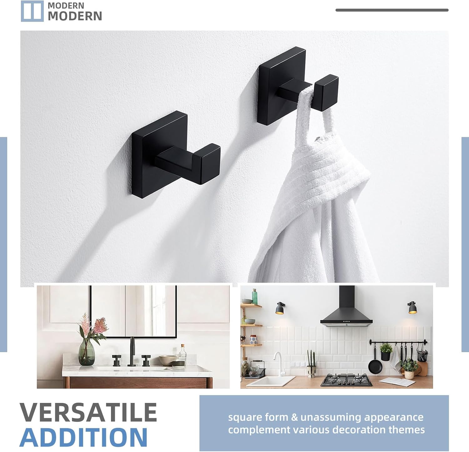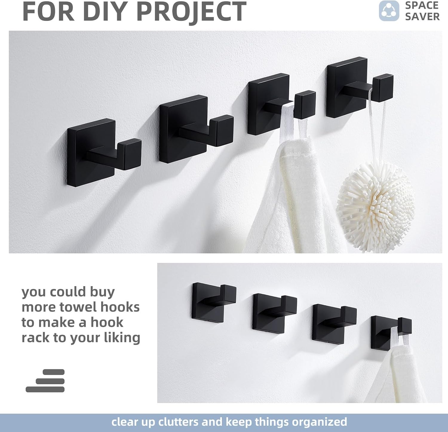 - HANDY SQUARE HOOK: 1/2 inch(13mm) height of the hook end, easily hold robes or towels for easy access, effectively grab towels without falling off