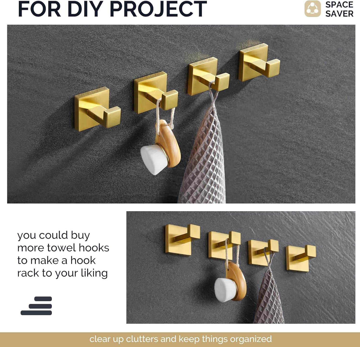 - HANDY & GORGEOUS: clean geometric with graceful profile deliver sophisticated appeal to your bathroom, sleek way to hold stuff like towels, robes or coats