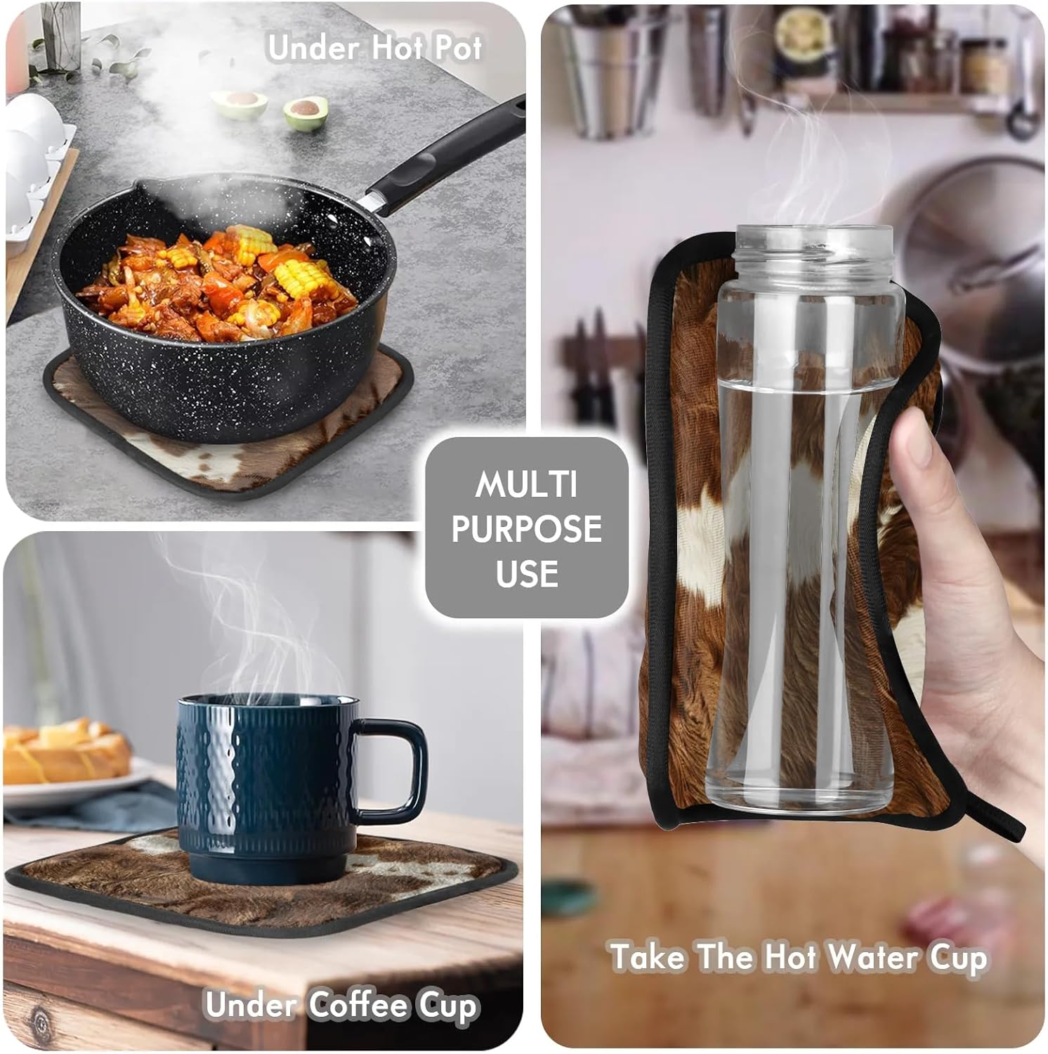 Cow Print Vintage Brown Oven Mitts and Pot Holders Sets, 2 Pcs Cow Decorative Kitchen Oven Glove for Cooking