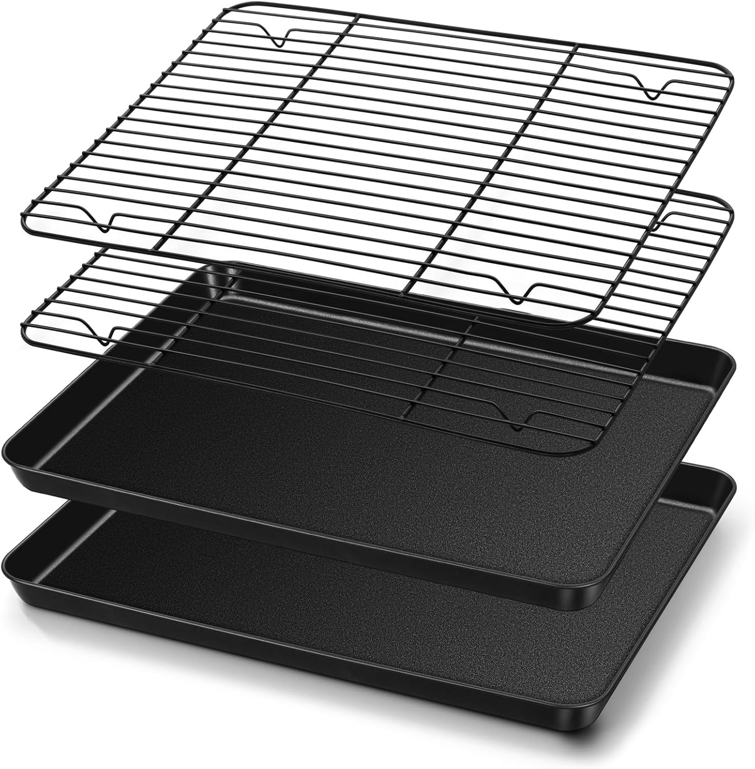 TeamFar Baking Sheet with Rack Set, 16 x 12 x 1” Nonstick Cookie Baking Pan Tray with Cooling Rack, for Baking/Roasting/Cooling, Healthy & Heavy-Duty, Easy Clean, Set of 4