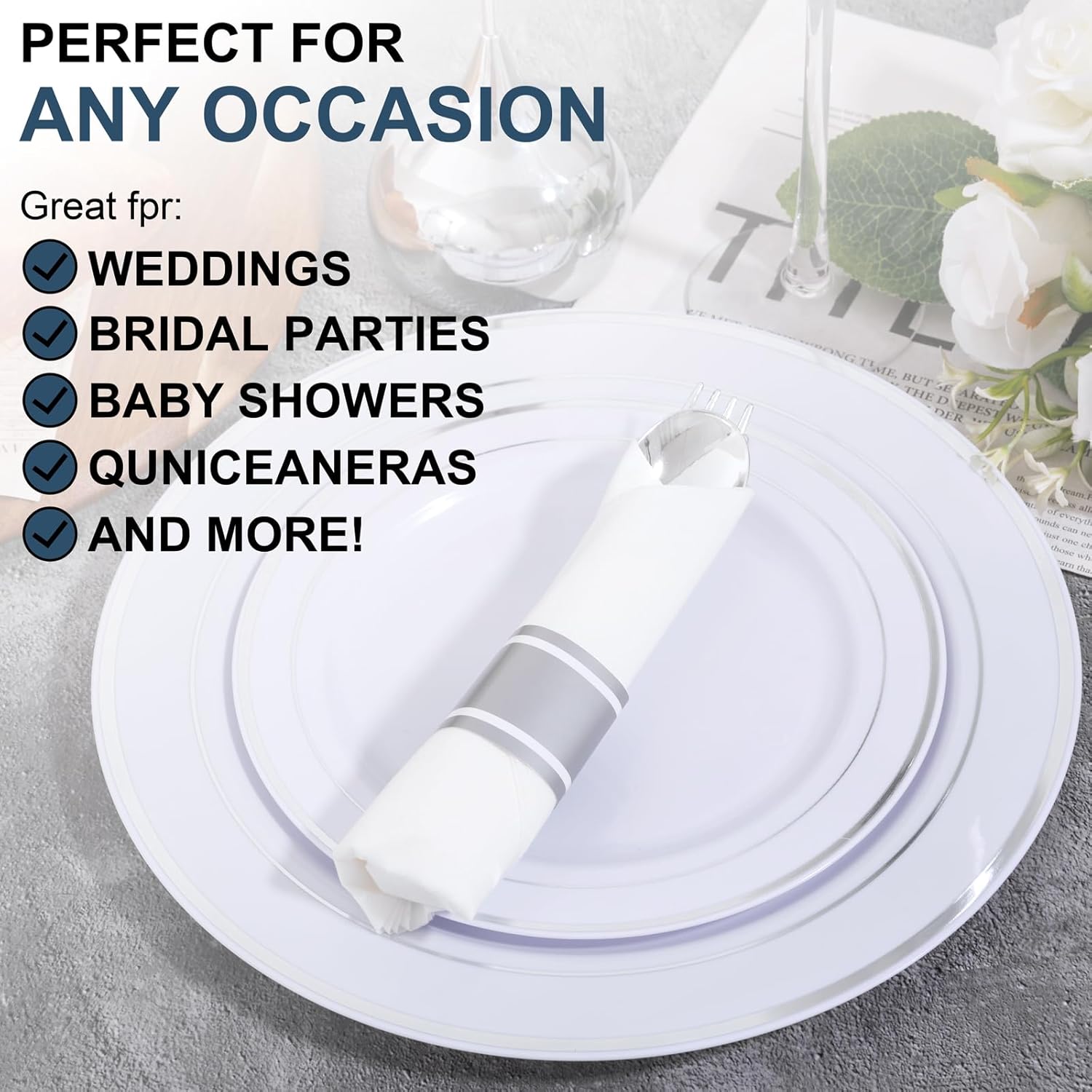 - Suitable for All Occasions: You can use this heavyweight wedding silverware disposable in any occasions. Classic design whether it is a business meeting or a birthday party, including all formal and informal events. Such as anniversaries, tea parties, wine tastings, wedding receptions, engagement and graduation parties, fancy restaurants, big lunches, etc.