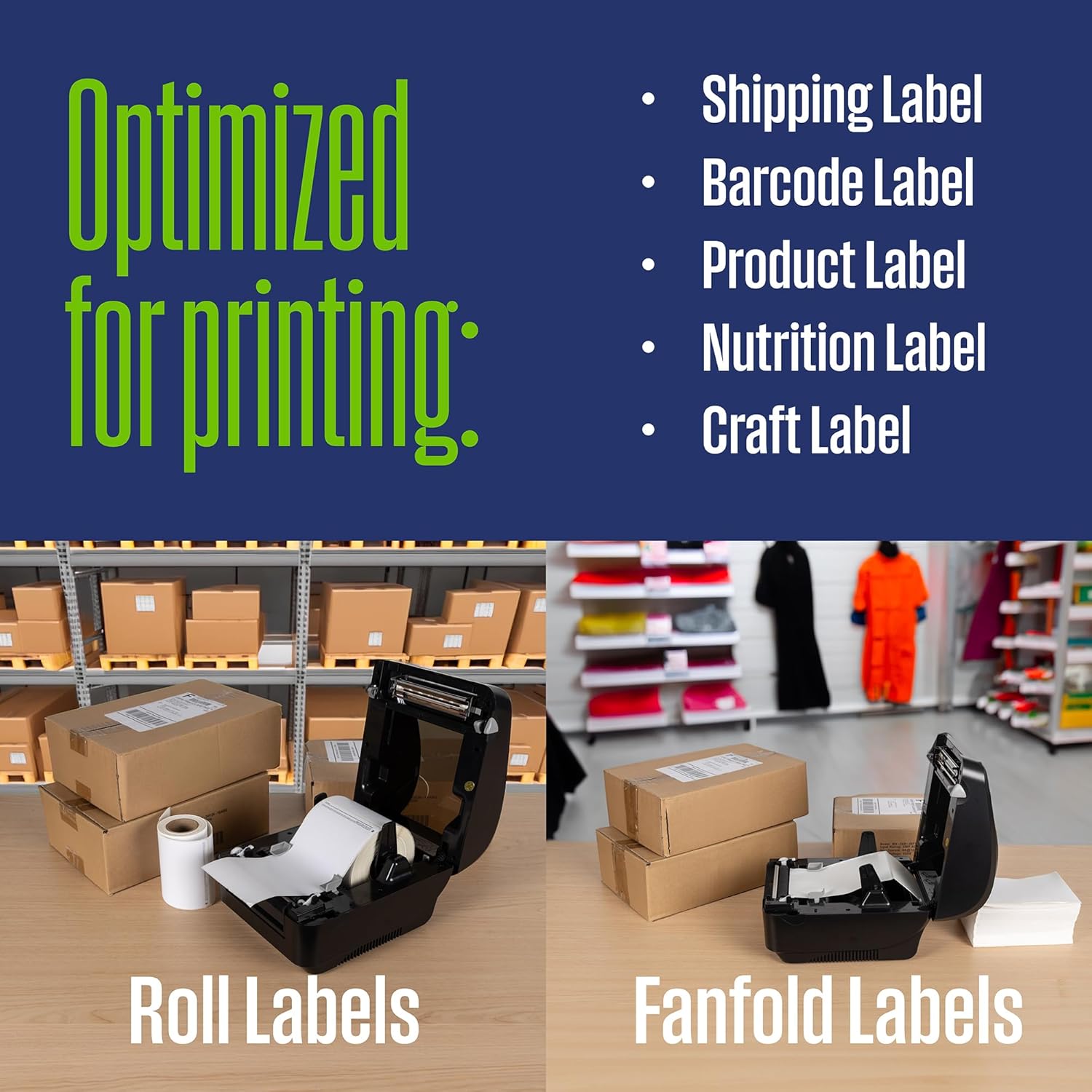 - 4x6 THERMAL LABEL PRINTER: Can be used with fanfold labels or label rolls. Supports media widths of 0.78" to 4.6" with a max printing width of 4.25", thickness of 0.06mm to 0.25mm, a label roll outer diameter of 4.75", and a core diameter of 1" to 3".