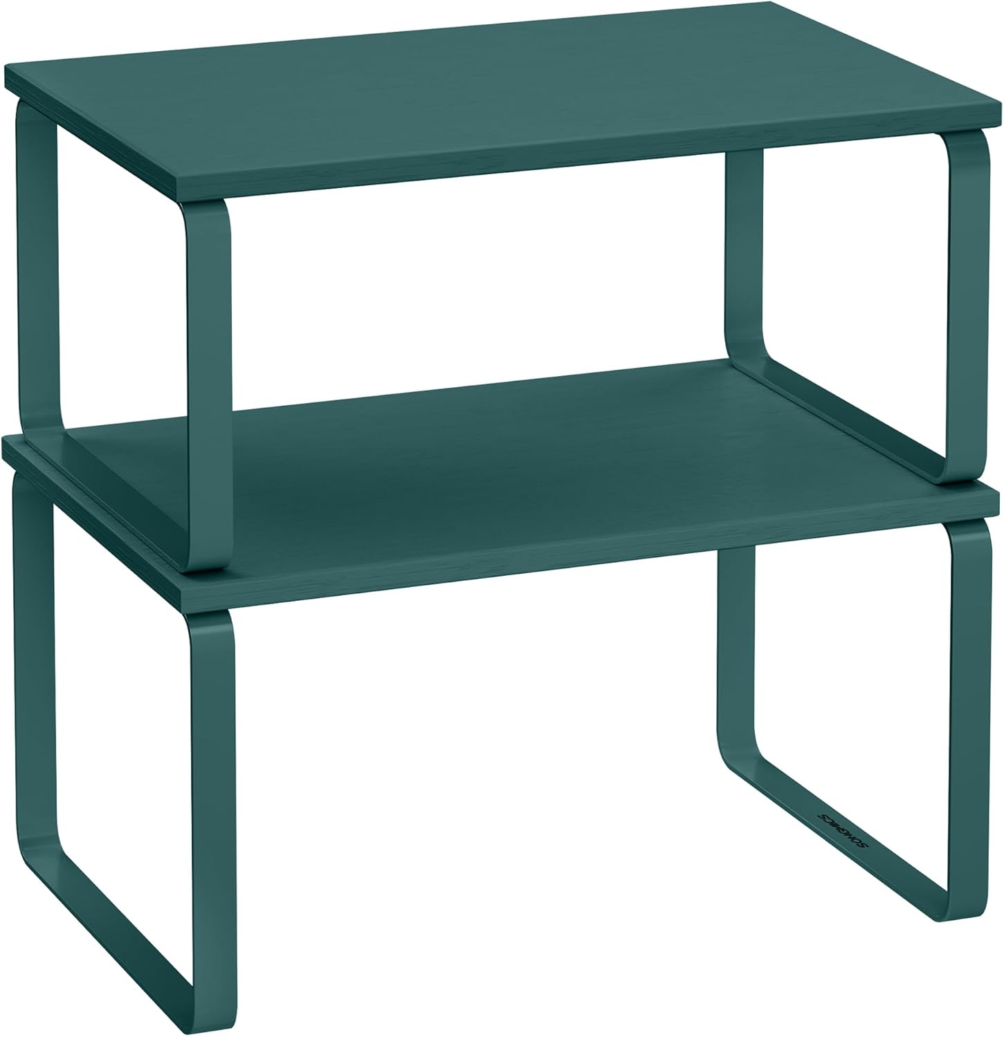 SONGMICS Cabinet Organizer Shelf, Set of 2 Kitchen Counter Shelves, Kitchen Storage, Spice Rack, Stackable, Expandable, Metal and Engineered Wood, MARRS Green UKCS002C02