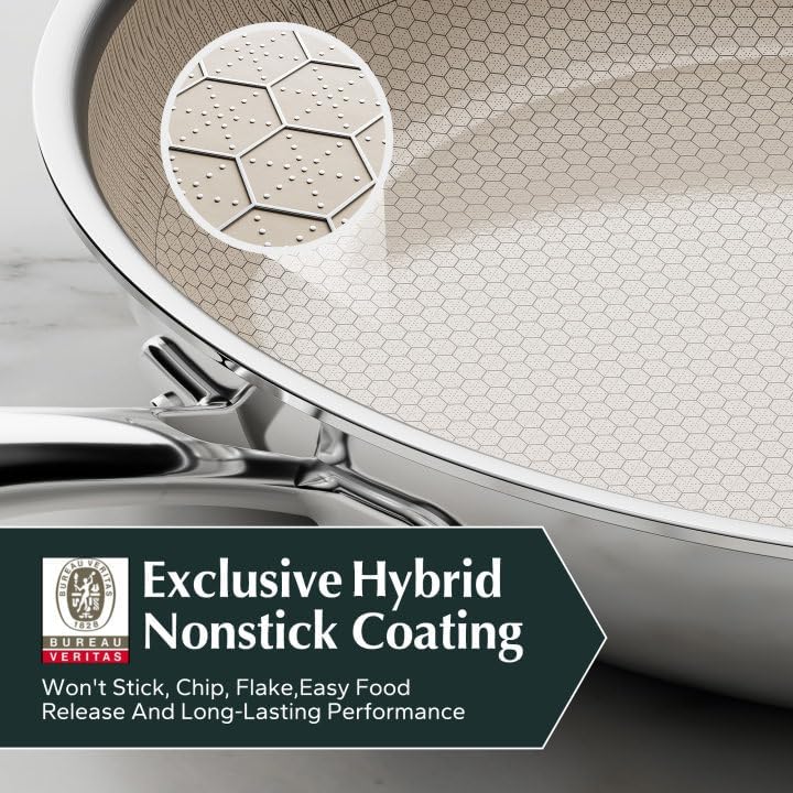 - Little Pro Tip for Your Pan: Low & Slow Wins the Race! Save energy and protect your ceramic coating by cooking on medium-low heat (we recommend keeping it under 300°F). Our three-ply structure base spreads warmth evenly, so you don’t need high flames to sear steaks or crisp veggies. Plus, your food stays juicier – and your pan stays pristine longer