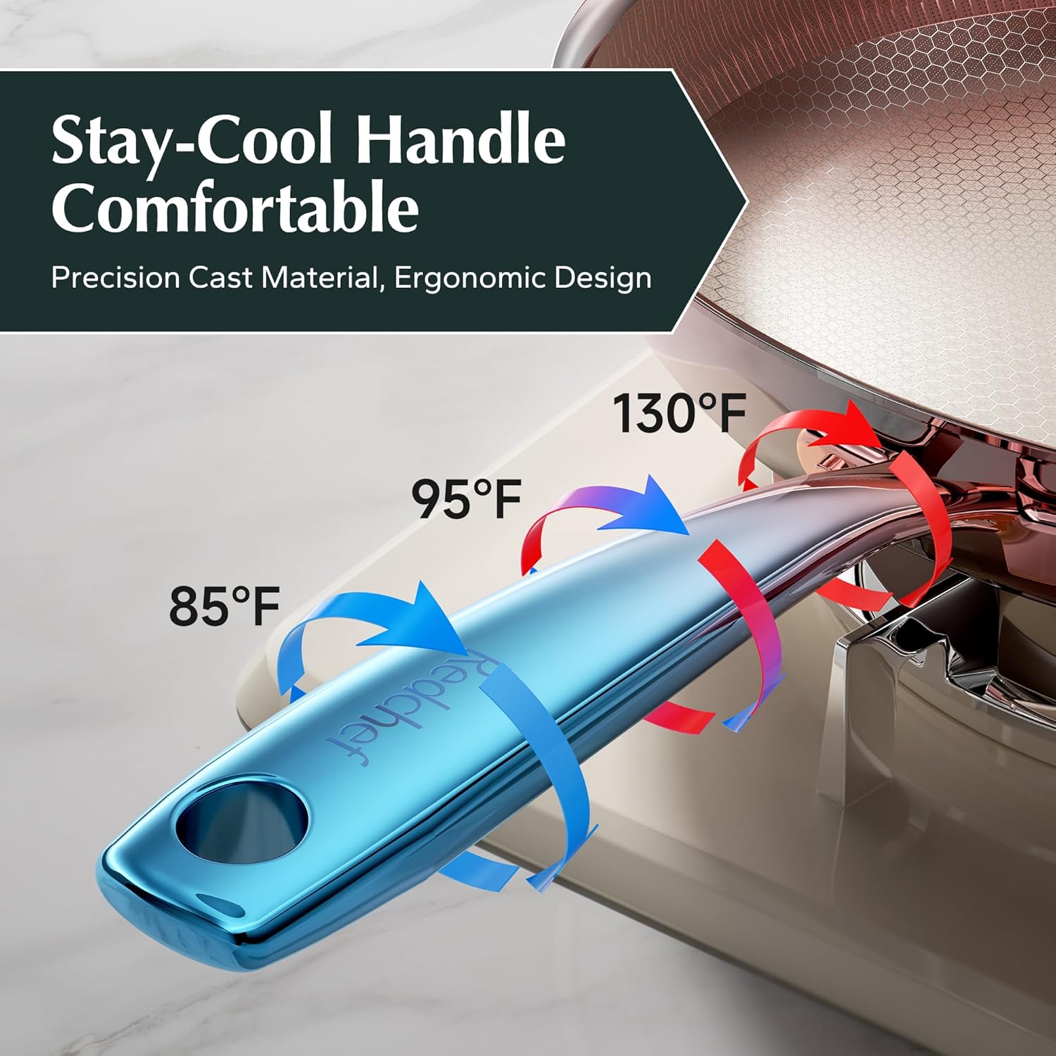 Redchef Non Stick Frying Pans, Hybrid 12 Inch Ceramic Frying Pan, Tri-Ply Stainless Steel Skillet, Non Toxic, PFAS PFOA & PTFE Free, Dishwasher & Oven Safe, Compatible with All Cooktops