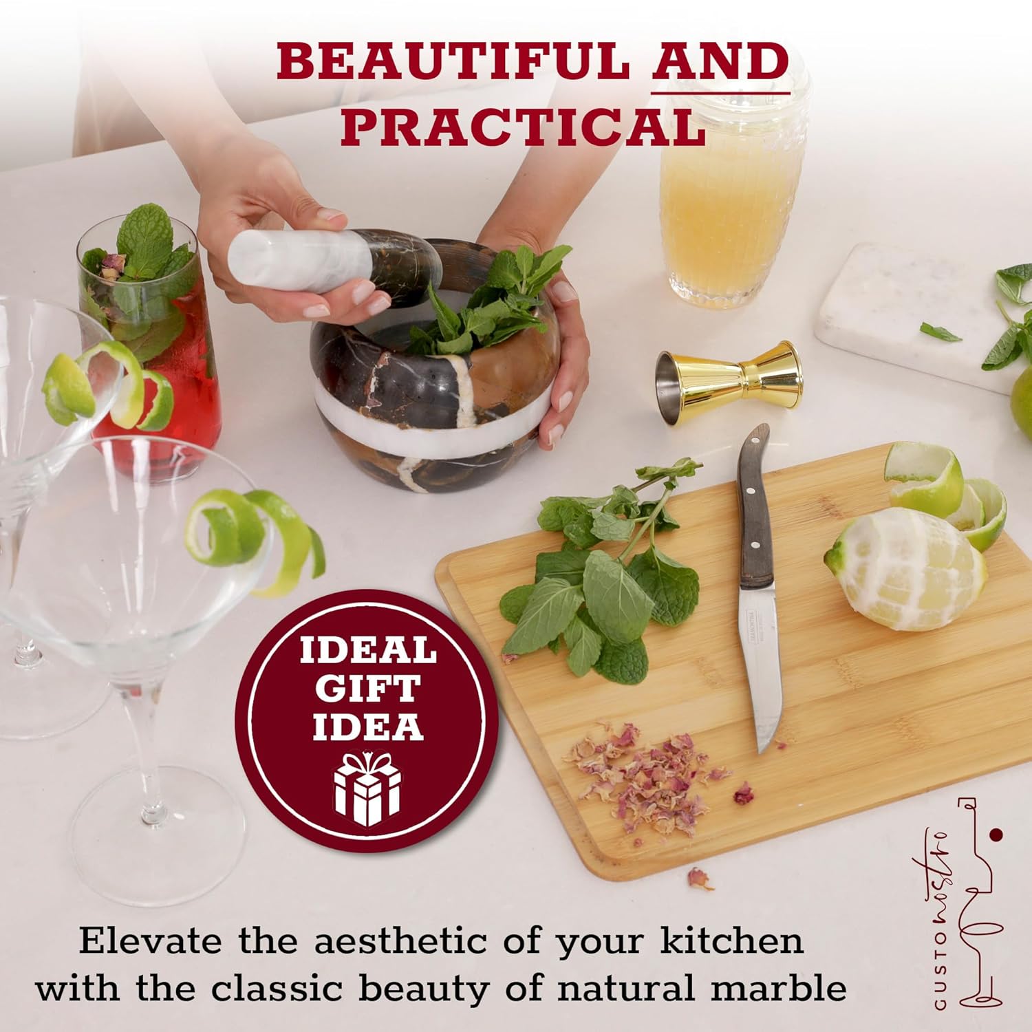 - LUXURIOUS KITCHEN MASTERPIECE This pestle and mortar set, designed with enhanced functionality and aesthetics, is an ideal gift for any kitchen enthusiast, Crafted from premium marble ensures optimal grinding performance, perfect for both novice cooks and seasoned chefs alike