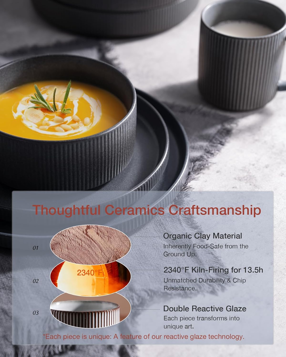 - [Premium Ceramic Durability]: Fired at 2340Β°F for 13.5 hours, our dishes boast impressive weight and thickness. They can resist chipping, scratching and daily wear, ensuring reliable kitchen use. Enjoy worry-free daily use, even with silverware