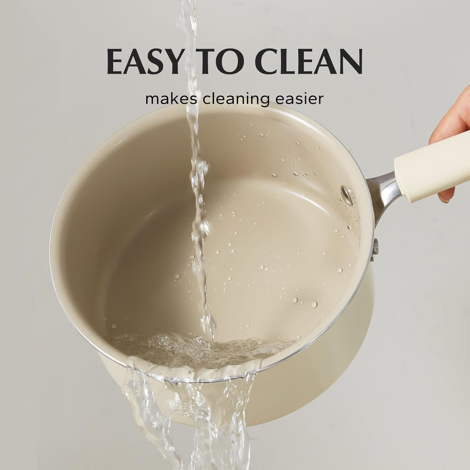 - Ceramic Coating: Our small pots for cooking feature a ceramic coating that is safety. This non-stick coating ensures food doesn’t easily stick to the bottom, making them ideal for cooking pasta, sauces, oatmeal, and more. These ceramic nonstick sauce pan are a reliable kitchen companion for a variety of dishes