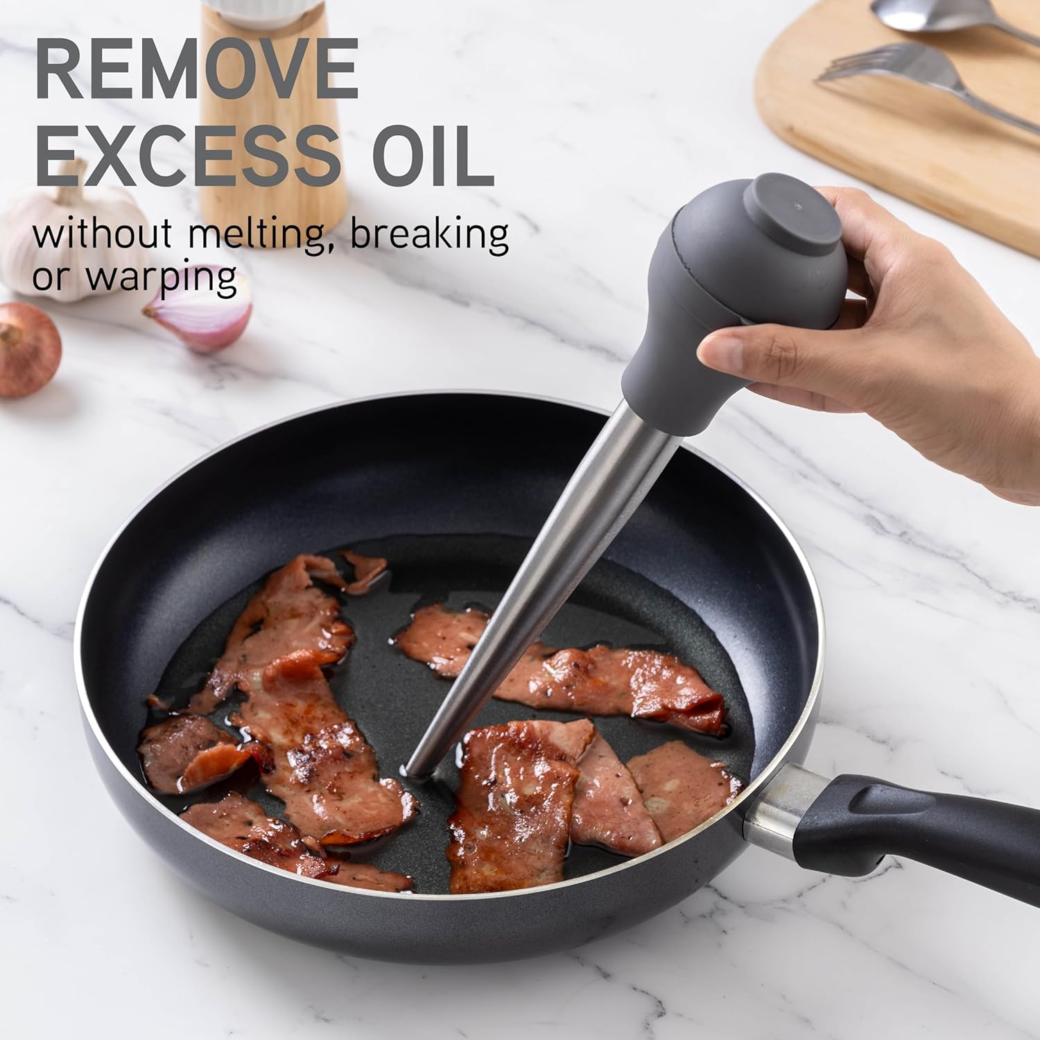 - Comfortable Grip & Control: The ergonomic design ensures a comfortable grip, providing precise control during basting, making it an indispensable tool for every cooking enthusiast.