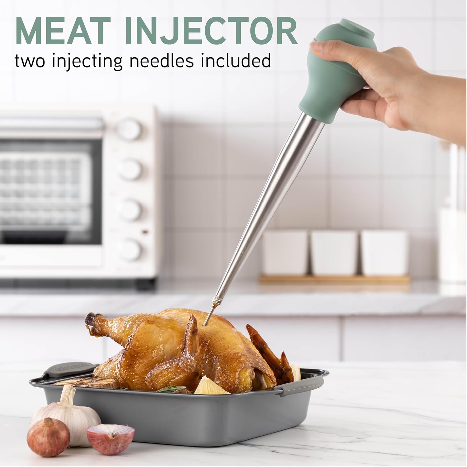COOK WITH COLOR Turkey Baster with Cleaning Brush - Food Grade Syringe Baster For Cooking, Deluxe Set, Sage