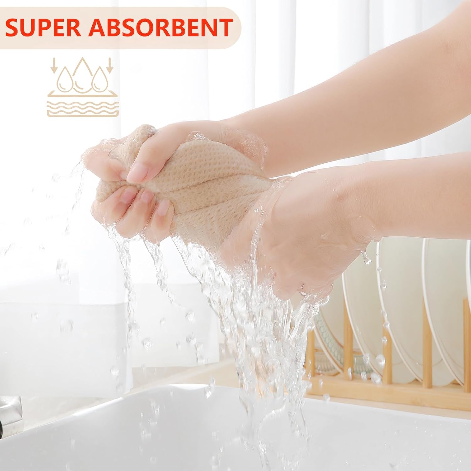 Homaxy 100% Cotton Waffle Weave Kitchen Dish Towels, Ultra Soft Absorbent Quick Drying Cleaning Towel, 13 x 28 Inches, 12-Pack, Beige