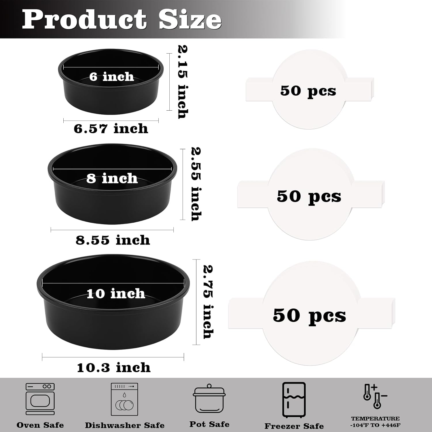 - Round Cake Pan Set: 3 pack circle cake pans, size: 6 Inch 8 Inch 10 Inch.Integrated molding process to prevent leakage. The 150 count of parchment paper that come with it make the demoulding job much easier and are perfect for baking enthusiasts and beginners.