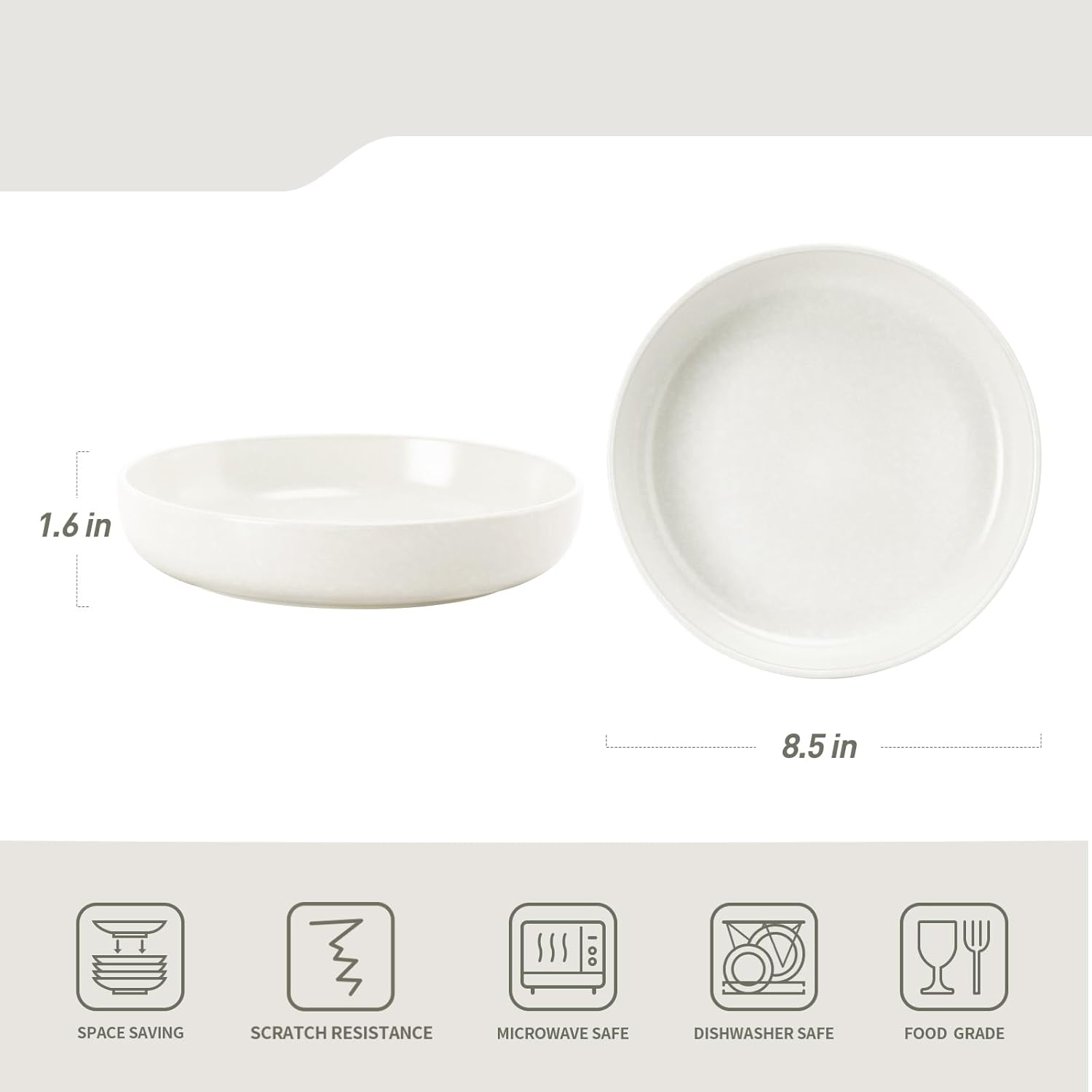 - PASTA BOWL SET OF 4 - Ideal size 8.5’’ Dia, practical depth 1.6’’ H, It holds contents both solid & liquid with ease- great for pasta, soup, dessert, ice cream, rice, beans and so on