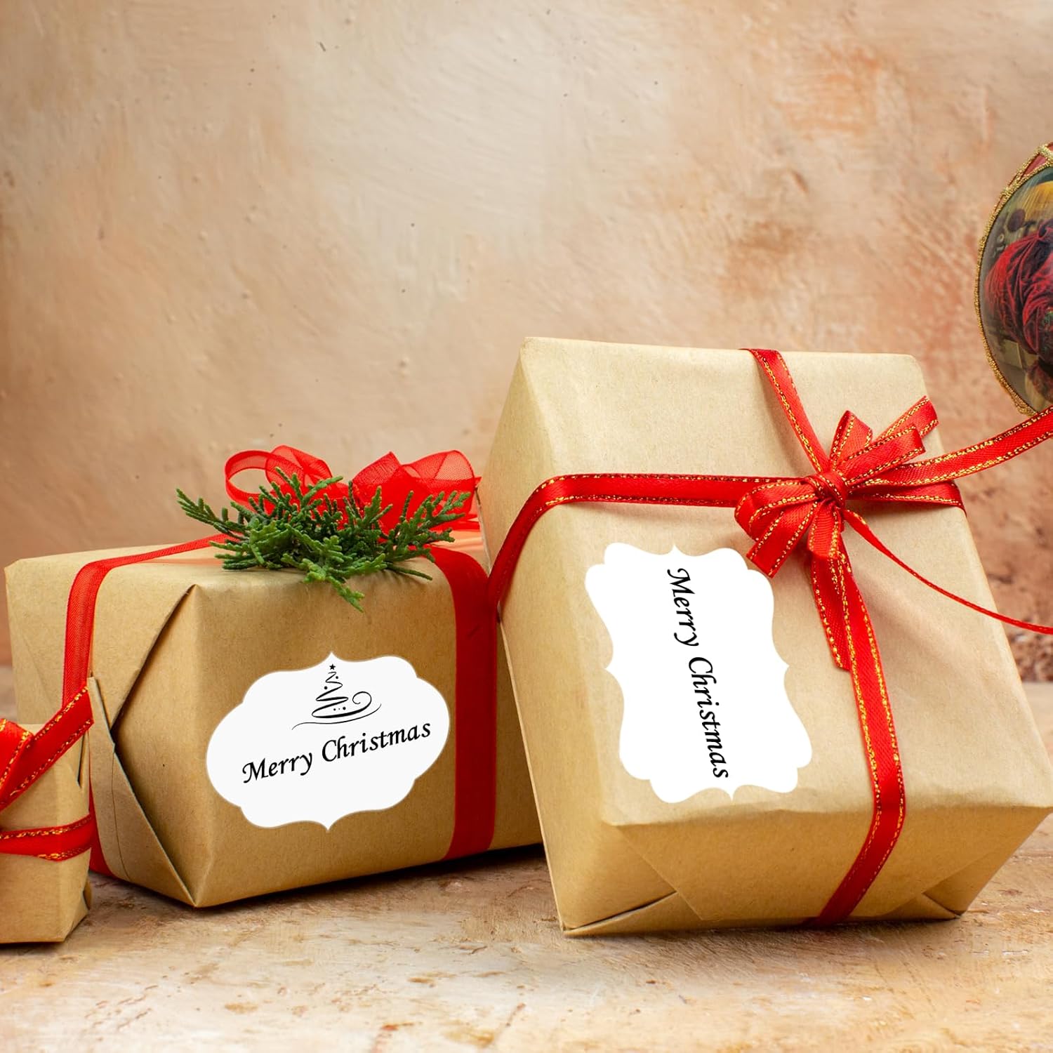 White Labels Stickers, 250PCS 3" x 2" Fancy Shape Stickers Labels for Storage Box or Food Jars Holiday Present Stickers Christmas Gift Tags Stickers