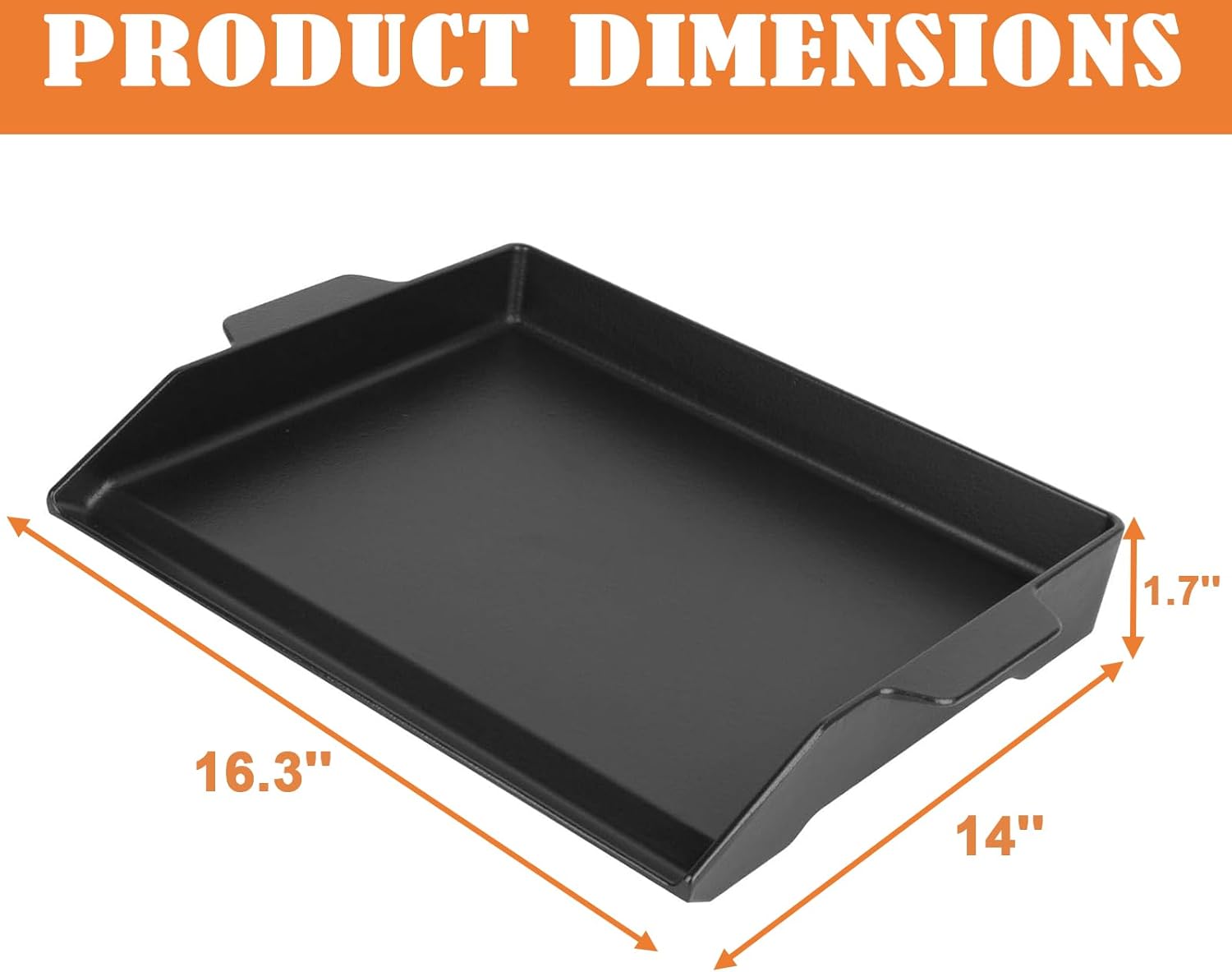 - [Multifunctionality]-Dimensions: 18.5" LΓ14" WΓ2.5" H, our griddle is designed to fit virtually any grill or 4 burner range oven. Whether you're searing steaks, grilling vegetables, or cooking a hearty breakfast, this versatile griddle offers consistent heat retention and even cooking results