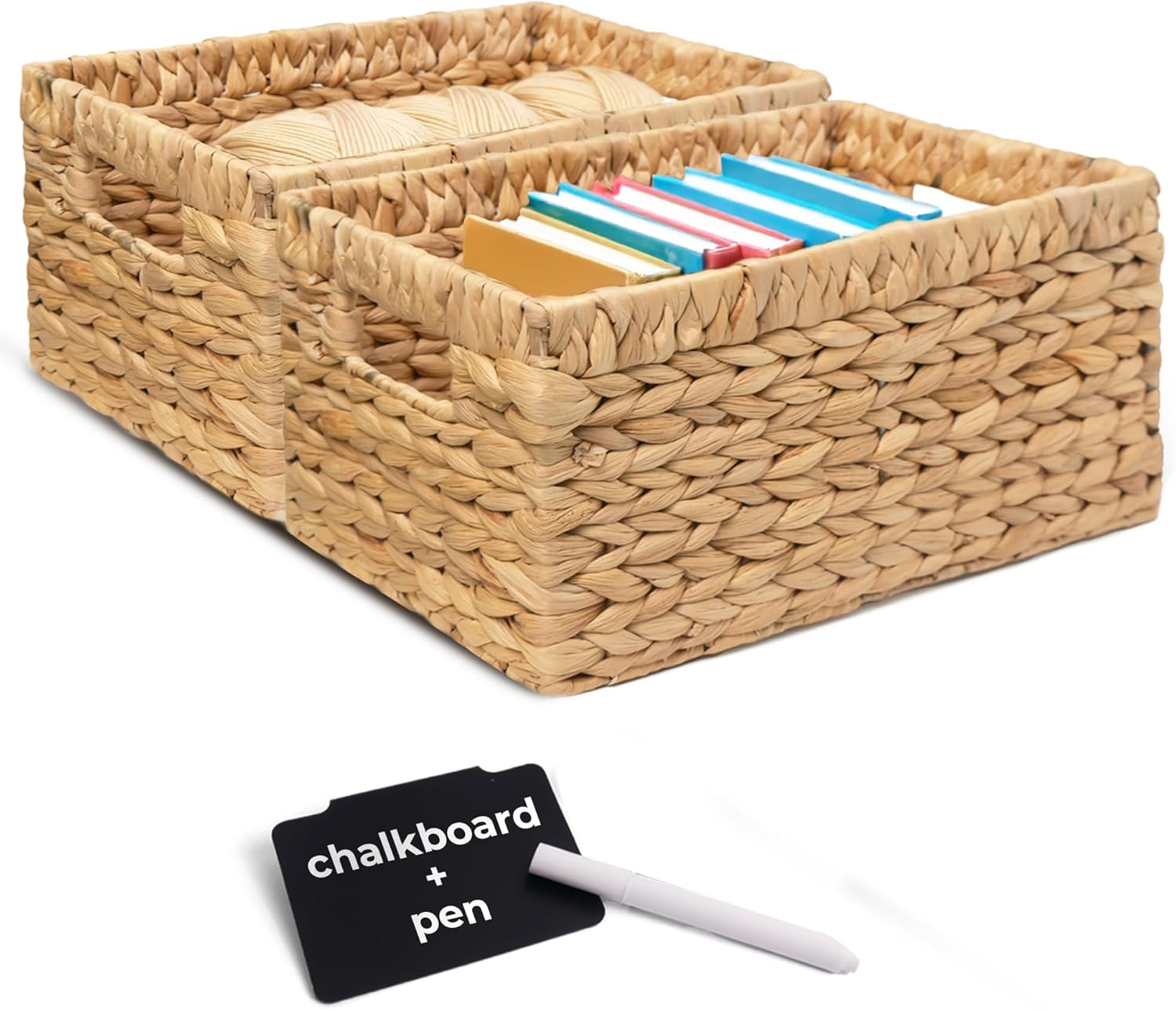 - πΏ[ Pack of 2 Pcs] Designed to fit comfortably on shelves, or for room organizing. Hyacinth wicker storage baskets include two medium-sized woven storage bins (13.0 x 8.25 x 7.0 in). And may vary within 1/4 in due to handwoven.