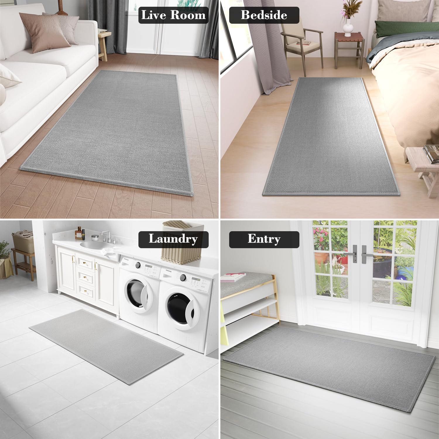 Kitchen Mat, Rubber Backing Cushioned Non Slip Kitchen Rugs for Floor, Absorbent Runner Comfort Standing Mat Rug Washable for Kitchen, Office, Home, 35.4"x71" (Grey)