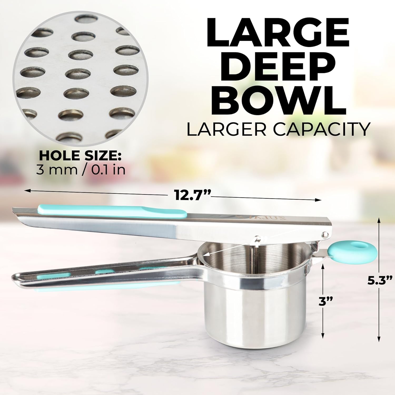 Zulay Kitchen Large 15oz Potato Ricer, Heavy Duty Stainless Steel Potato Masher and Ricer for Mashed Potatoes, Mashed Potato Masher & Potato Press Gadget for Perfect Mashed Potatoes - Turquoise