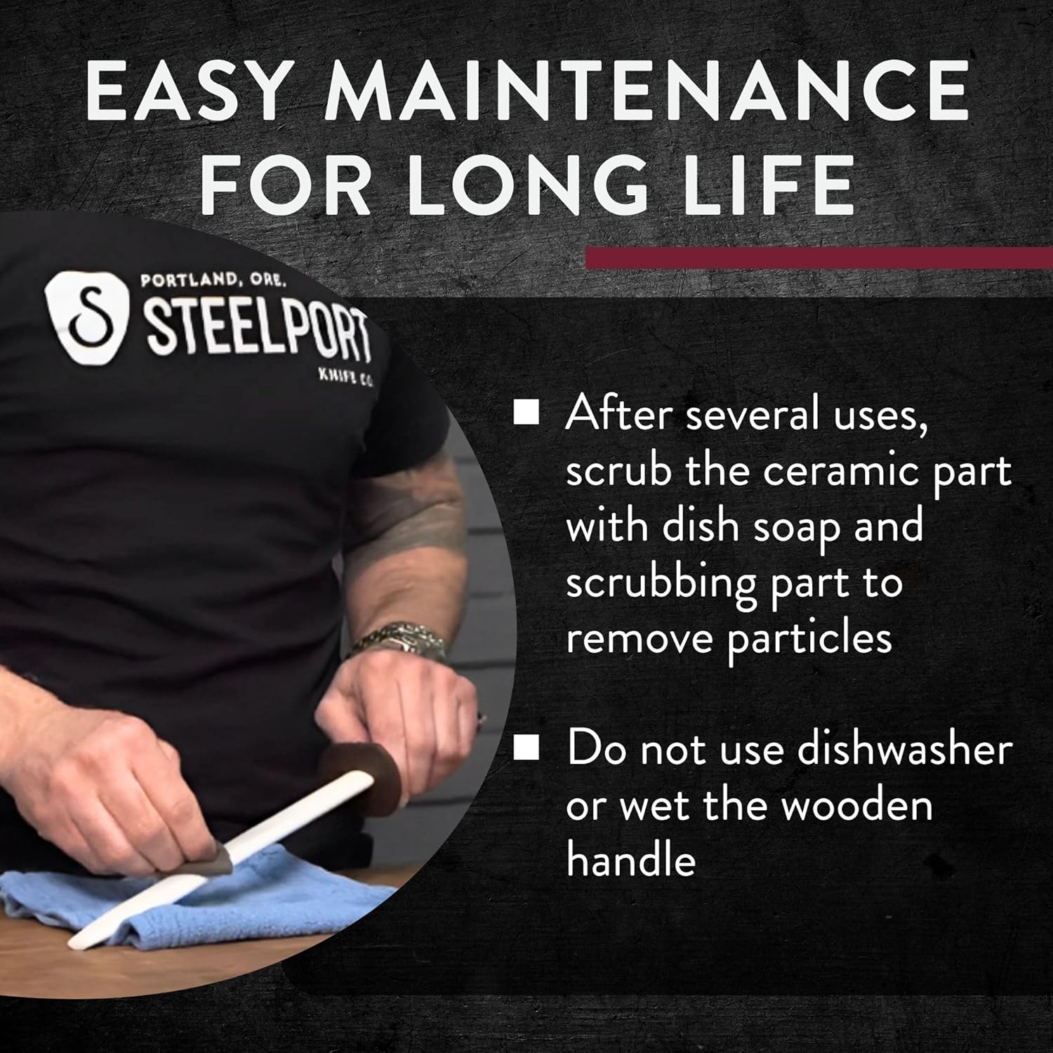 - Maintain Razor Precision with Ceramic Honing: The STEELPORT Ceramic Honing Rod gently realigns your knifeโs edge to maintain peak sharpness โ with minimal steel removal. Ideal for keeping high-carbon blades in top condition between sharpenings.