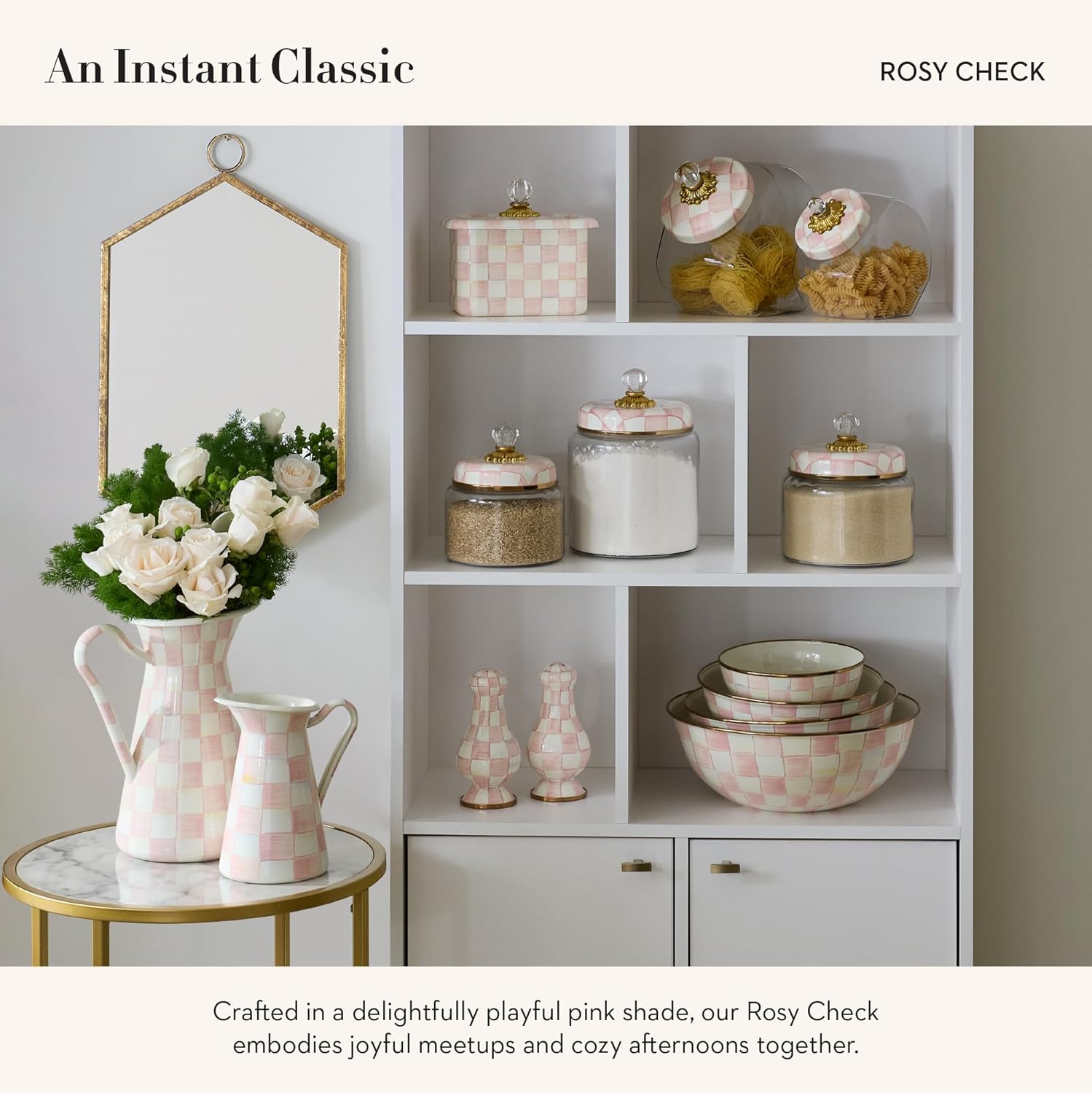 MACKENZIE-CHILDS Enamel Everyday Bowl, Serving Bowl for Entertaining, Extra-Large, Pink-and-White Rosy Check, Set of 1