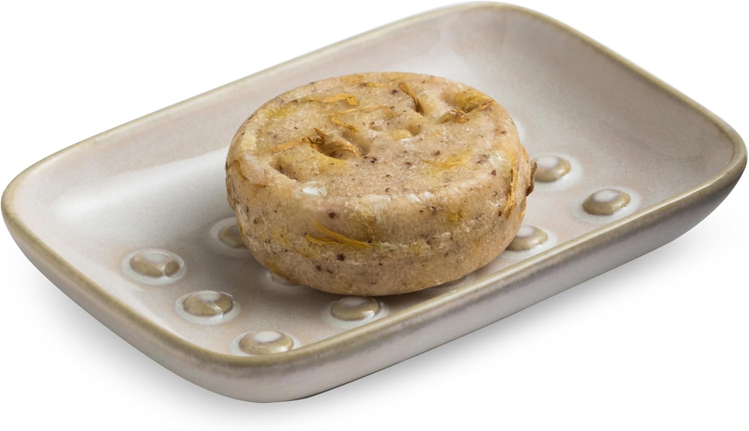 Soap Dish for Shower, Ceramic Soap Dish Non-Slip Soap Holder Bar Saver Tray for Bathroom Kitchen Sink, Floating Point Design Save Soap Loss