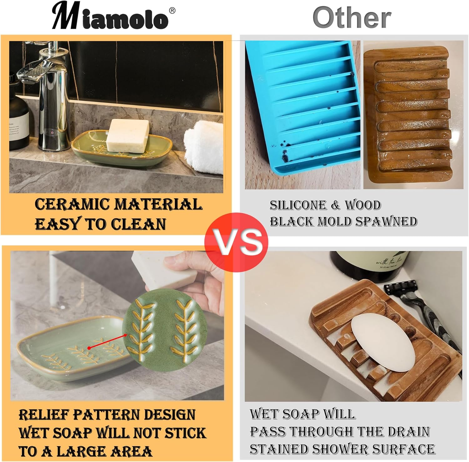 - PREMIUM QUALITY MATERIAL: Miamolo Soap Dish is made of high quality ceramic material, durable and non-slip, ensuring that the soap is securely placed and will not slip off. It stays stable even in humid environments