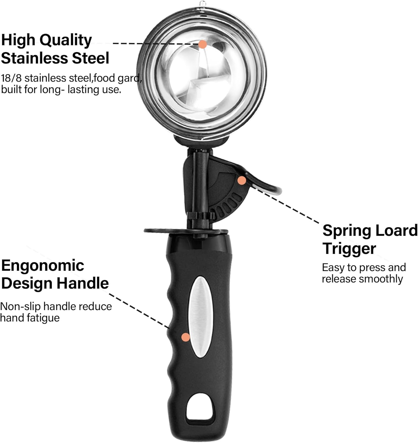 - Practical Kitchen Gadget- This ice cream scoop can meet your daily use needs, whether cooking or baking can help you to finish the task excellently. Dividing cookie dough, cupcakes, making fruit balls, meatballs, ice cream and more. In addition to use in the home kitchen, it can also be used in restaurants, pastry stores, ice cream parlors.