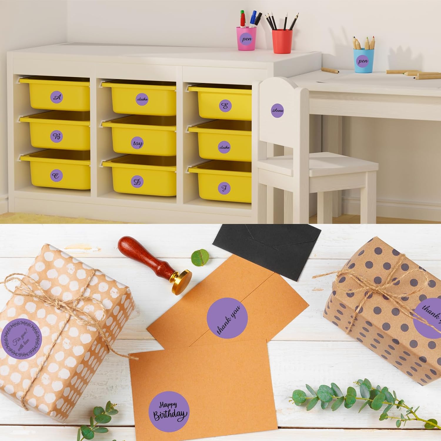Thermal Labels,2 Inch Purple Round Thermal Printer Stickers,Self-Adhesive Round Direct Thermal Labels,Thermal Stickers for DIY Logo Design,Name Tag (500/Roll
