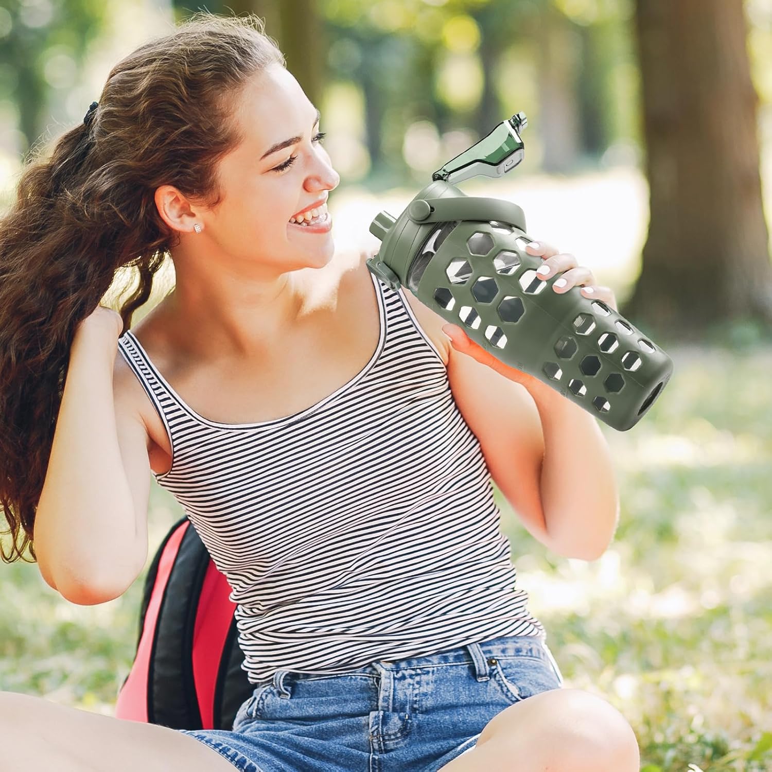 - SILICONE SLEEVES FOR BETTER GRIP:Use this water tumblers at home, office, take it to the gym or anywhere really! Our glass water bottles comes with a stylish silicone sleeve to offer you additional protection and to provide an extra grip to the bottle. The sleeve is removable, so you can use the water jug with or without it.
