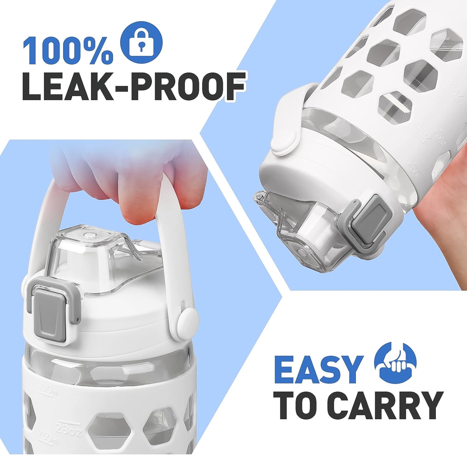- SILICONE SLEEVES FOR BETTER GRIP:Use this water tumblers at home, office, take it to the gym or anywhere really! Our glass water bottles comes with a stylish silicone sleeve to offer you additional protection and to provide an extra grip to the bottle. The sleeve is removable, so you can use the water jug with or without it.