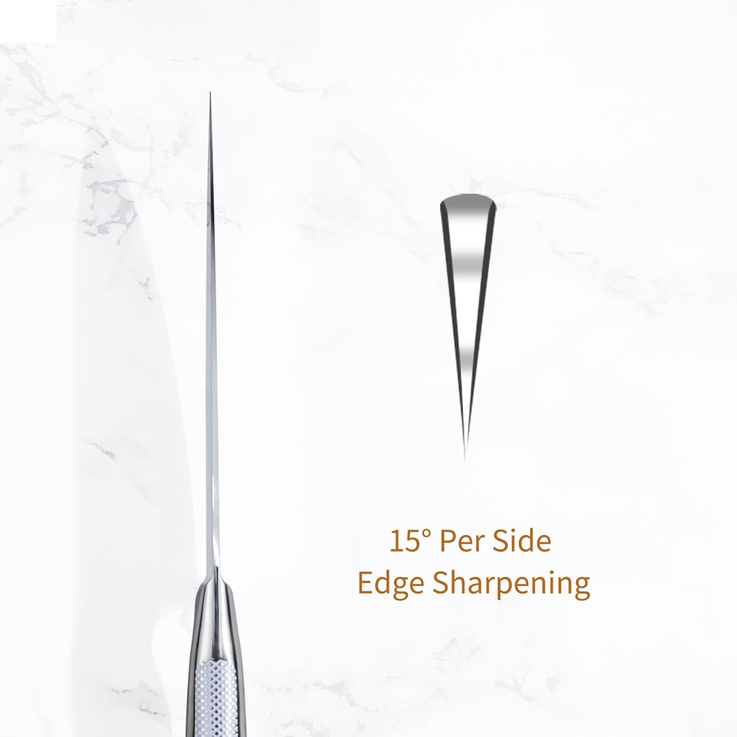 - Razor Sharp Mirror Polished Blade: The blade features a stunning mirror polish finish and is honed to a razor-sharp edge, allowing for smooth and precise cuts. Its superior sharpness makes slicing, dicing, and chopping a breeze, enhancing your overall cooking experience.