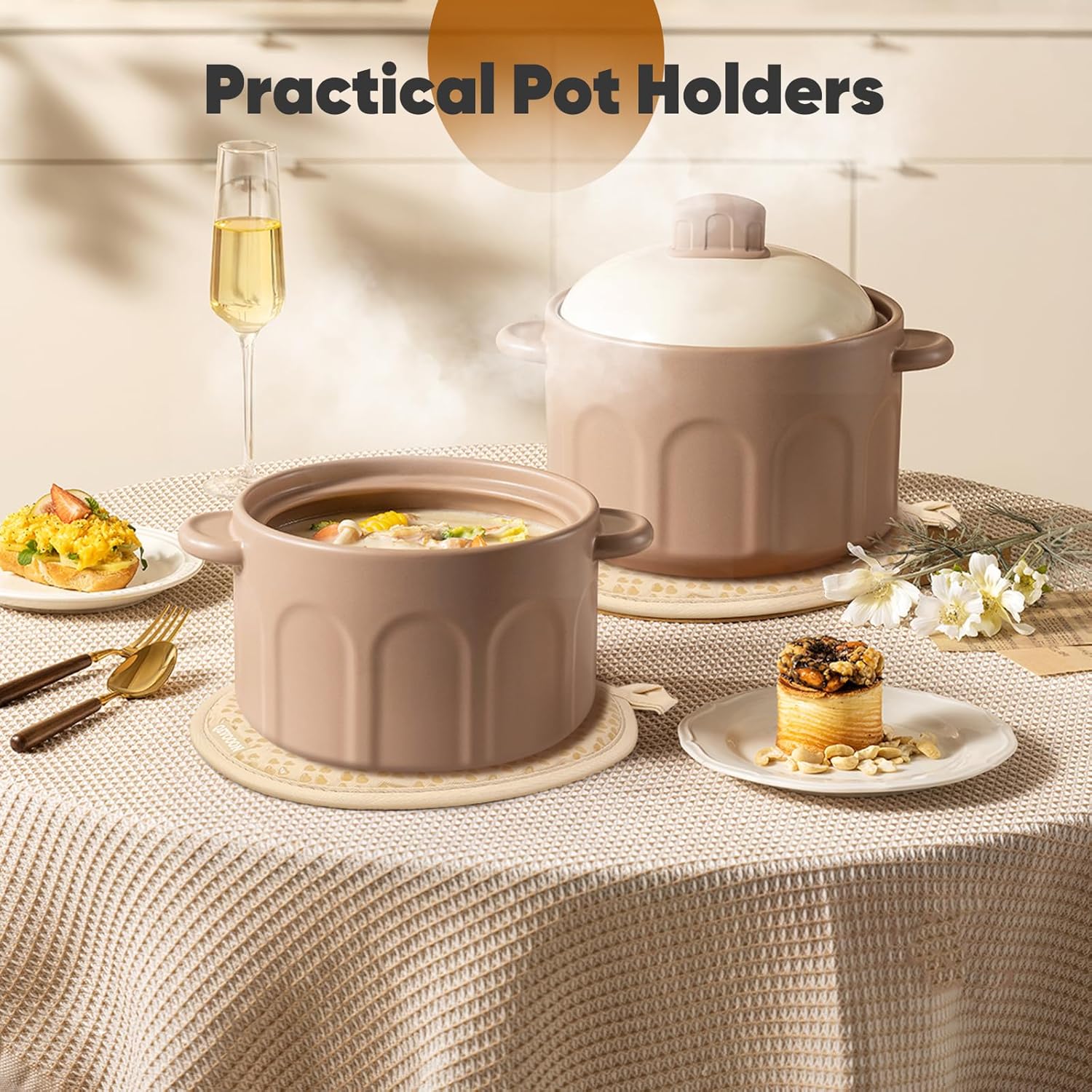 - ️Versatile Use & Easy Clean :The oven mitt and pot holder set are easy to clean and can be machine washed or hand washed.These kitchen essentials can be used for a variety of cooking tasks,including baking,grilling,stovetop cooking and more.The oven glove and pot holder are also a perfect gift for baker and cooker.