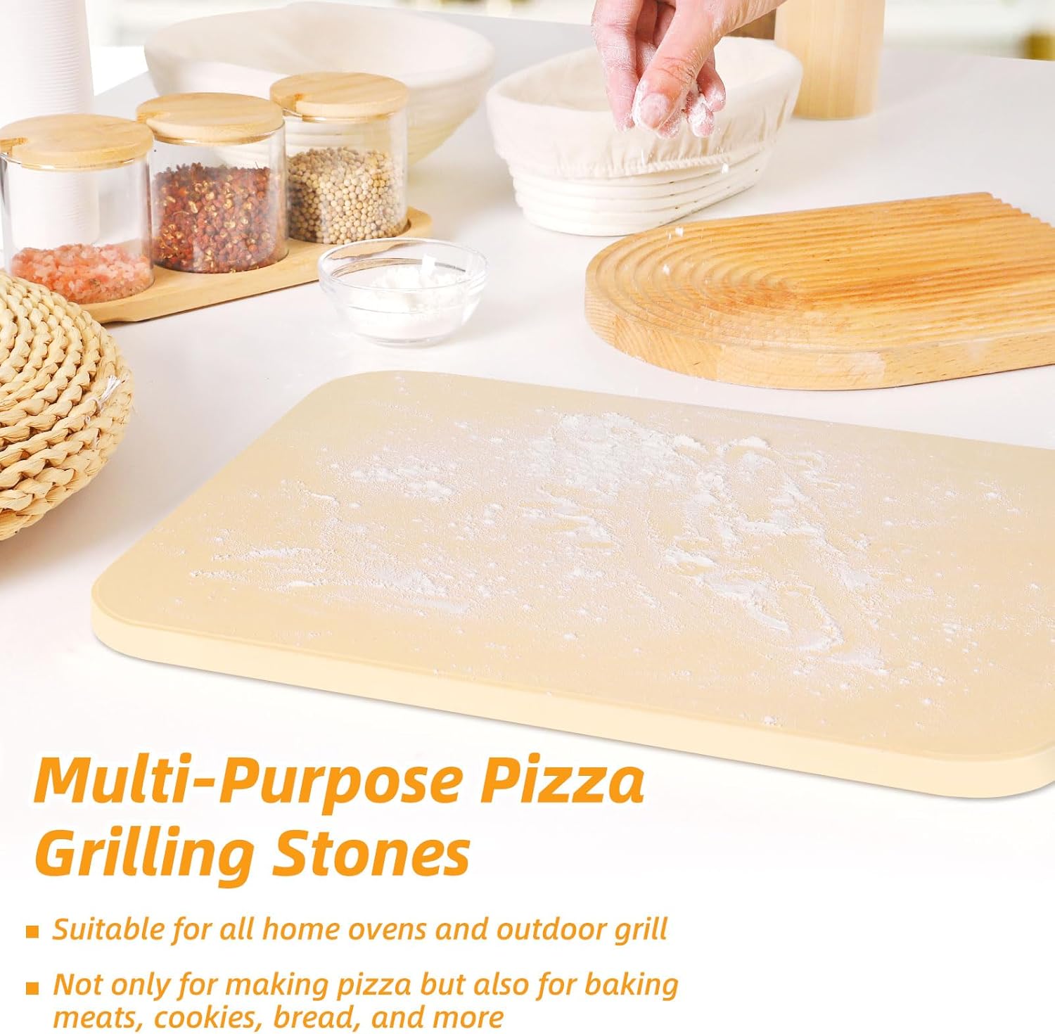 - 15 x 12" Pizza stone is made of 100% natural cordierite, which is FDA-safe, sturdy, durable, odorless, and features excellent thermal stability. It won't crack under high temperatures and can withstand heat up to 1470Β°F.