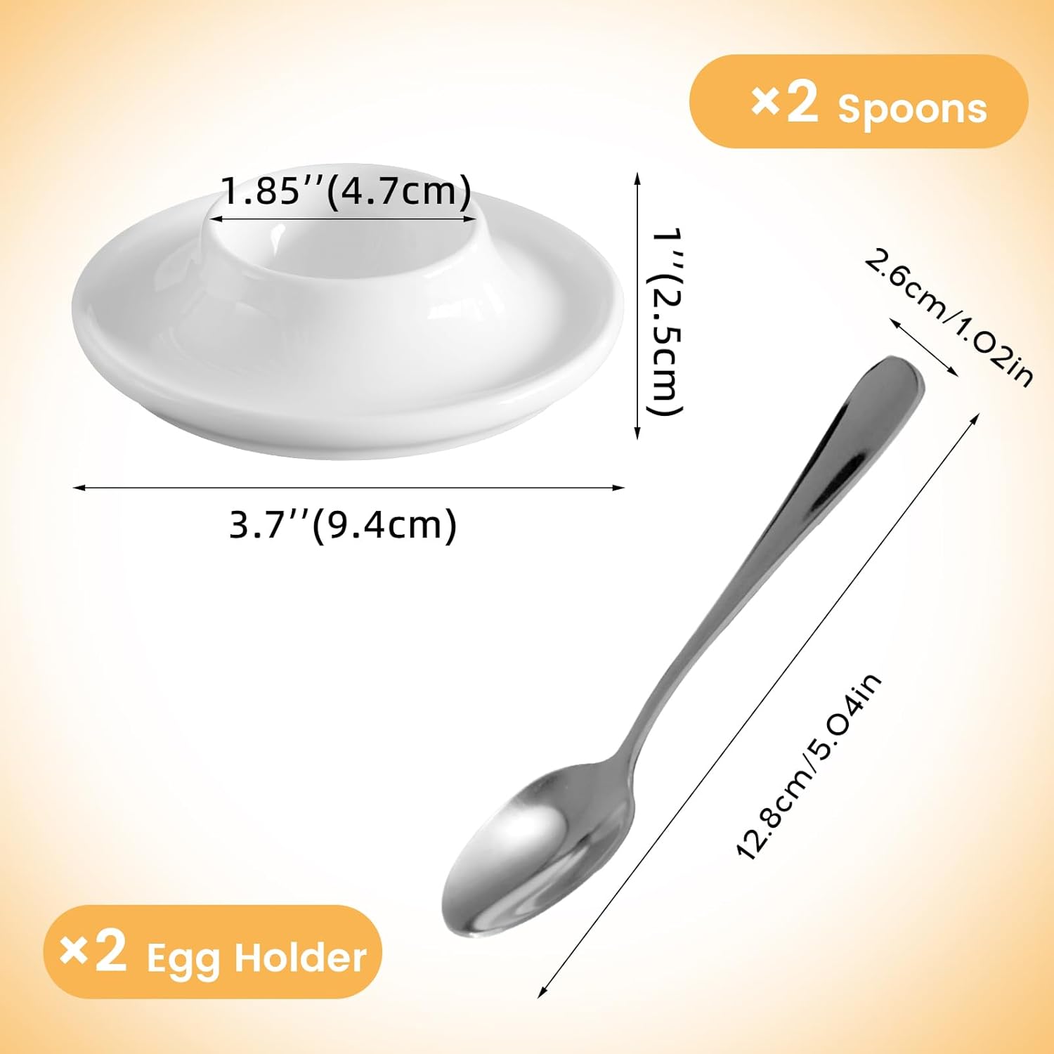 Cinf Ceramic White Egg Holder Set of 2 Porcelain Holder With 2 Stainless Steels Egg Spoons Breakfast Boiled Cooking Easy to Clean Childhood Memories Kitchen