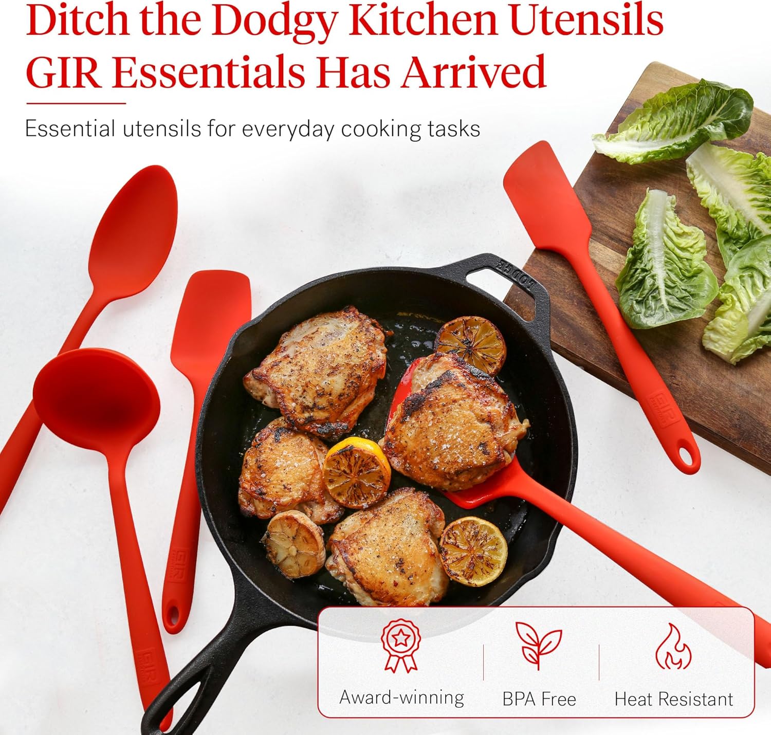 GIR: Get It Right 5-Piece Silicone Essentials Kitchen Utensils Set - Ladle, Spatula, Flip, Spoon & Spoonula - Non-Toxic Cooking Utensils for Nonstick Cookware, Cooking and Baking - Fire Red