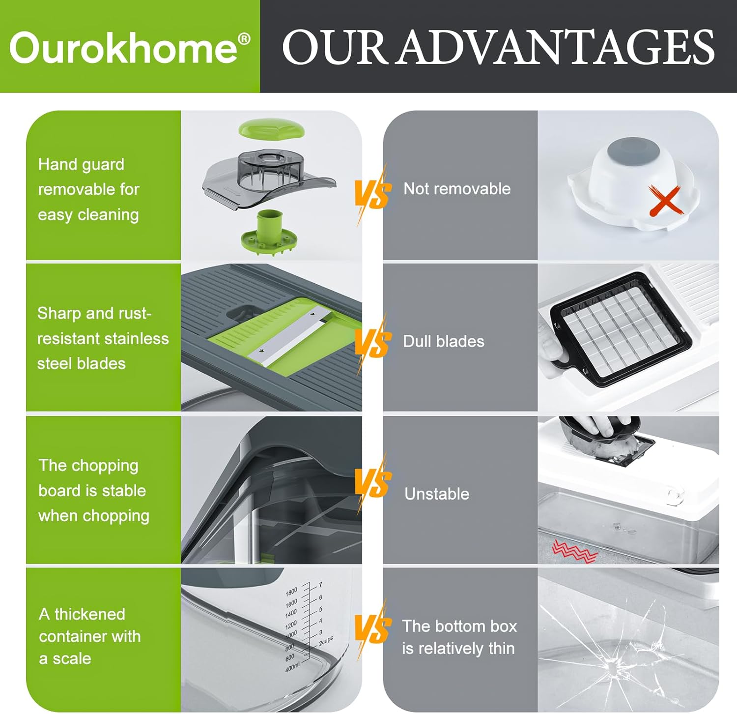 - A kitchen essential gadgets - Whether you're a novice cook or a seasoned pro, the Ourokhome mandolin slicer is a must-have in any kitchen. It's versatile, easy and safe to use and store, and backed by our 100% satisfaction guarantee.