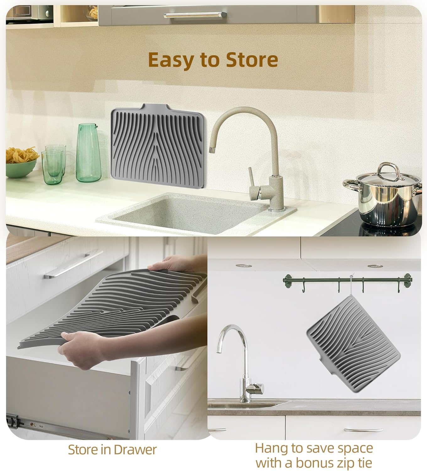 - Versatility: The silicone self-drying mat is a multifunctional tool, serving as a heat-resistant surface, coffee mat, dish rack liner, baking tray protector, pet feeding station, etc