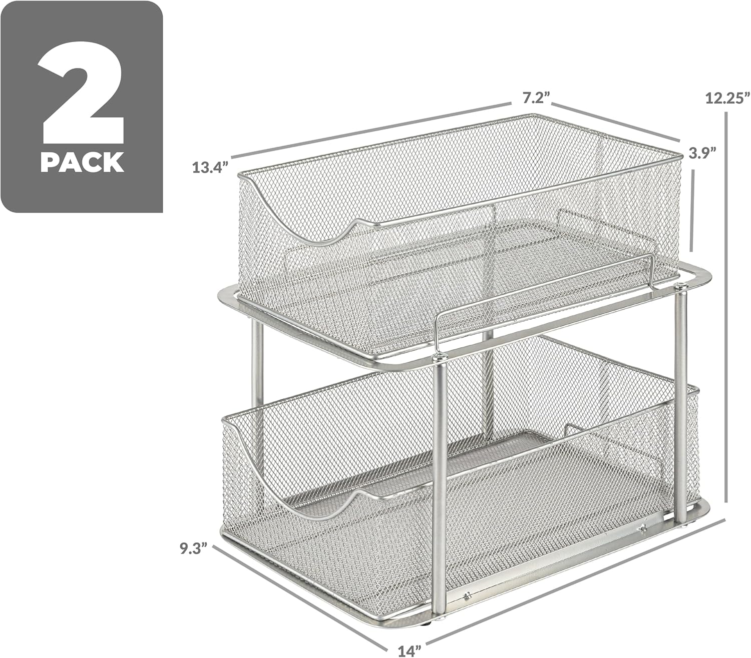 Sorbus 2 Sets of 2 Tier Metal Under Sink Organizer for Bathroom, Kitchen, Strong Steel Mesh Sliding Drawers for Under Sink, Under Cabinet, Closet, Kitchen, Pantry, Bathroom Organizers and Storage
