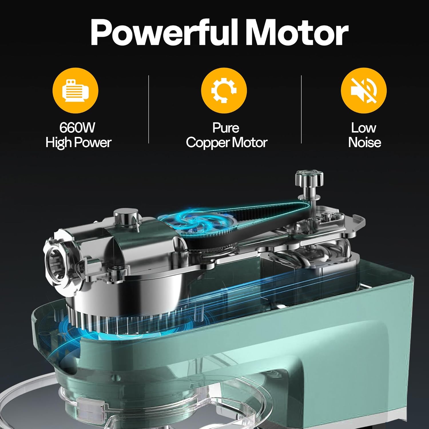 - POWERFUL PERFORMANCE: The VIVOHOME stand mixer is equipped with a 660 W pure copper motor that kneads and mixes faster and more thoroughly than human hands, easily handling all your needs; Its 360Β° planetary mixing and stirring mechanism ensures the attachments come into contact more evenly with ingredients in the bowl