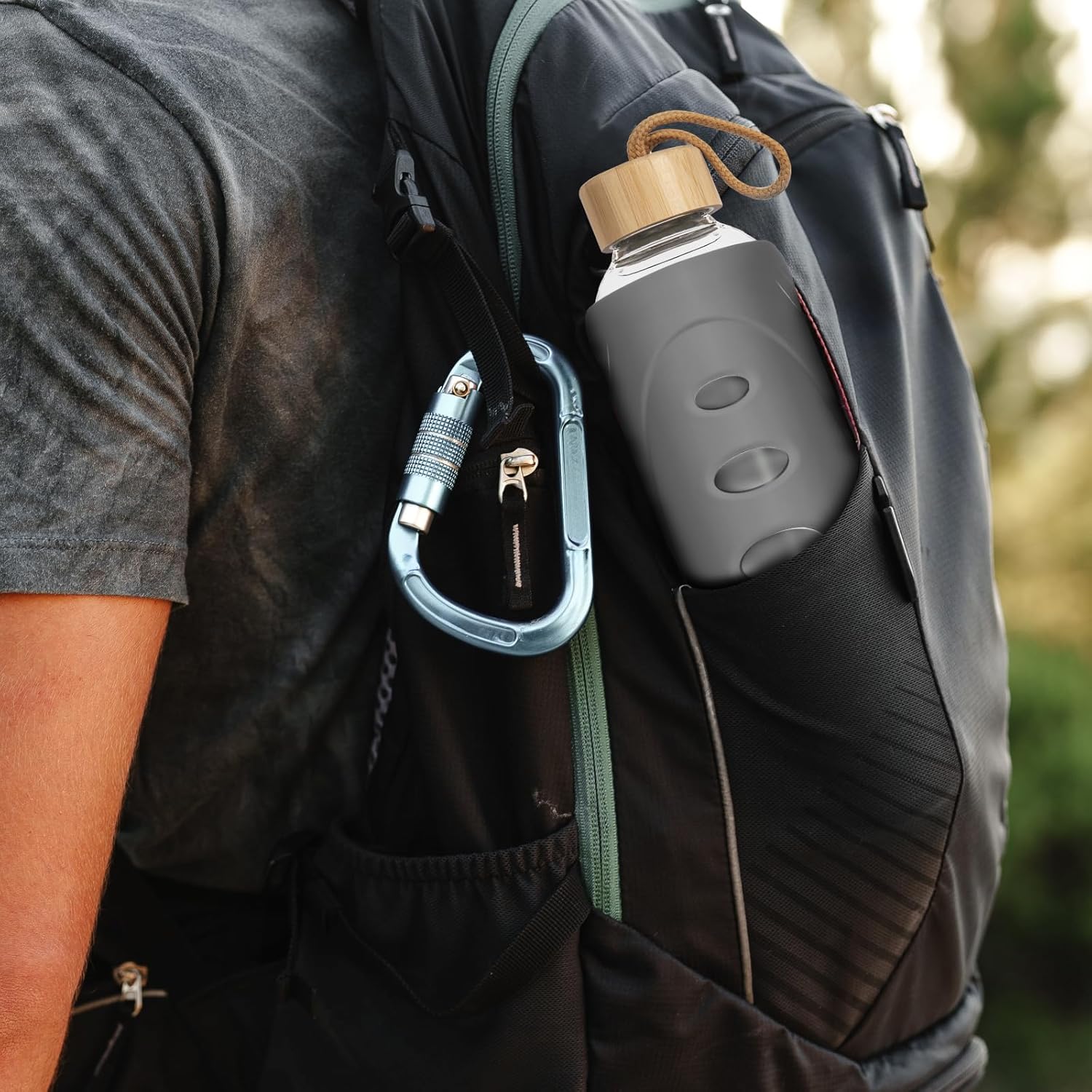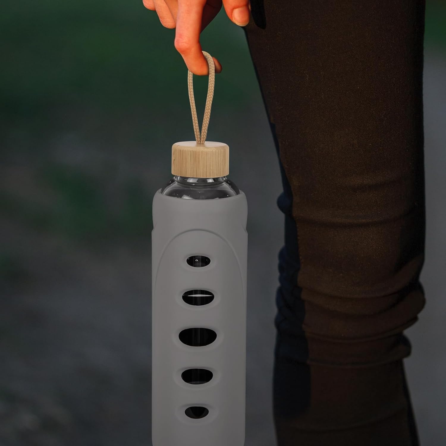 - STYLISH AND PORTABLE : Our sleek design makes the glass water bottle has an ideal travel buddy and elegant appearance. Outer Silicone sleeve offers secure grip and helps protect against breakage.