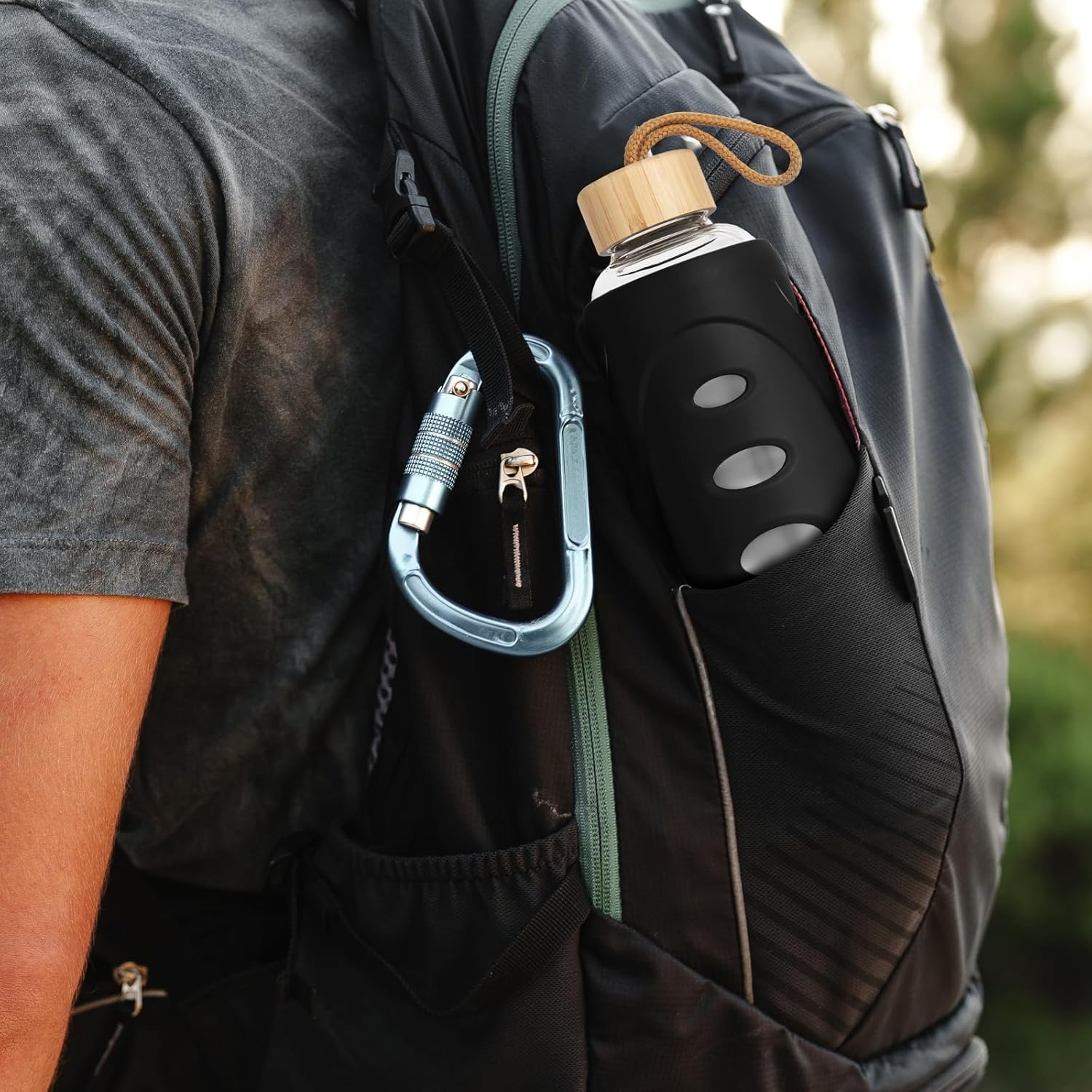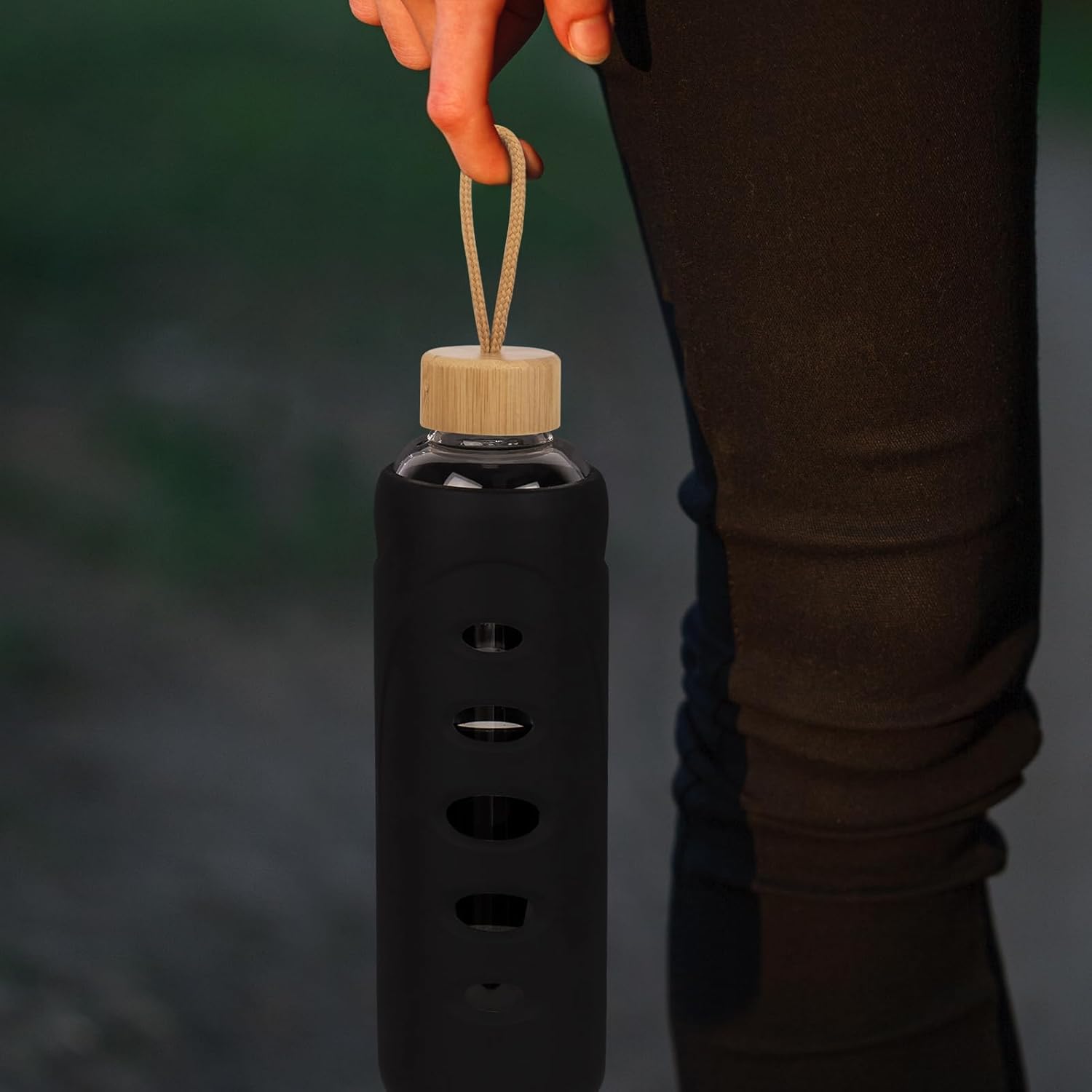 - STYLISH AND PORTABLE : Our sleek design makes the glass water bottle has an ideal travel buddy and elegant appearance. Outer Silicone sleeve offers secure grip and helps protect against breakage.