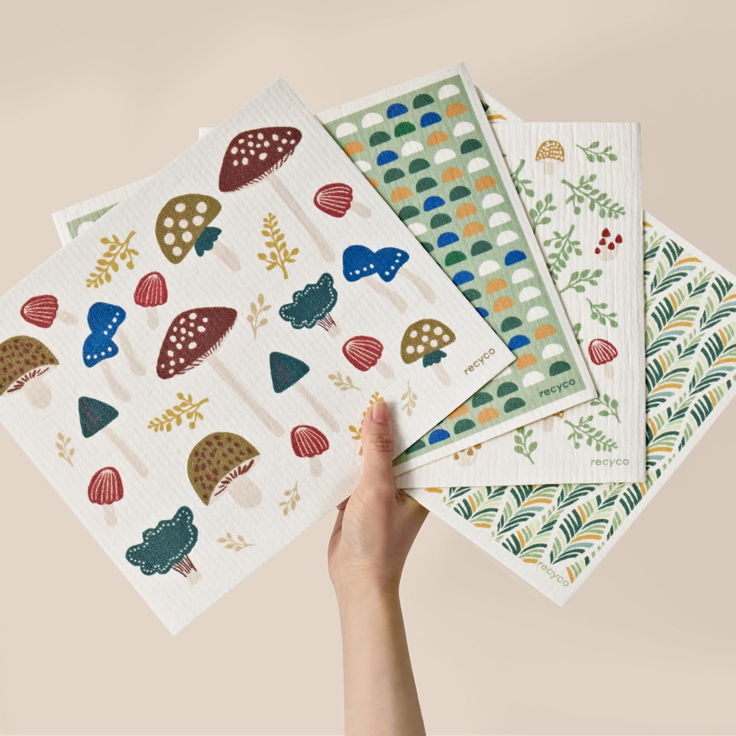 - Unique Patterns & Great Value: Our kitchen towels dish cloths come in 4 pieces value pack with a variety of well-thought patterns & colors for you to choose from. Elevate your cleaning game with great functionality, sustainability & aesthetics today.