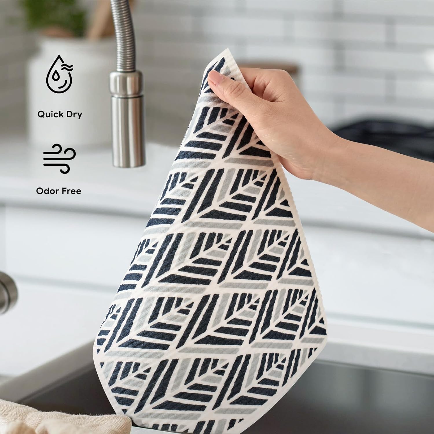 - Unique Patterns & Great Value: Our kitchen towels dish cloths come in 4 pieces value pack with a variety of well-thought patterns & colors for you to choose from. Elevate your cleaning game with great functionality, sustainability & aesthetics today.