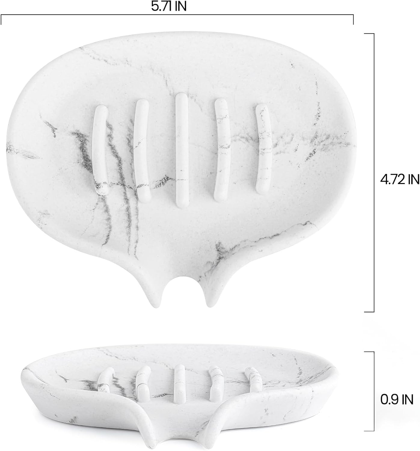 Soap Dish with Drain- Self Draining Bar Soap Holder for Shower, Marble Look Soap Savers Soap Tray Sponge Holder for Kitchen, Bathroom, Bathtub Sink, White